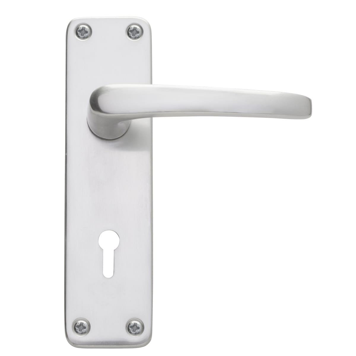 Frisco Lever Lock On Backplate 154 x 40mm (L x W) Satin Anodised Aluminium is classic lever design with its clean and simple lines conveys its traditional heritage. This stylish contemporary high quality designed lever on plate is fixed to a plain rectangular back plate. Designed with spindle running through it that sits just above a cylinder.