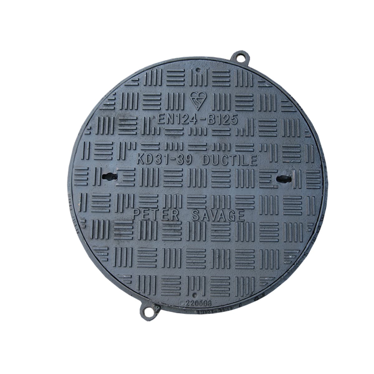 EJ Solid Top Circular Clear Opening Manhole Cover and Frame Black. 450mm in diameter and comes with a 22mm deep frame, it weighs 32kg. It has a good load bearing capacity which makes it suitable for use in driveways. This product is manufactured using ductile iron, which is a type of cast iron made of tough iron carbon material. The product has better longevity and tested to handle B125 Loading to EN124.