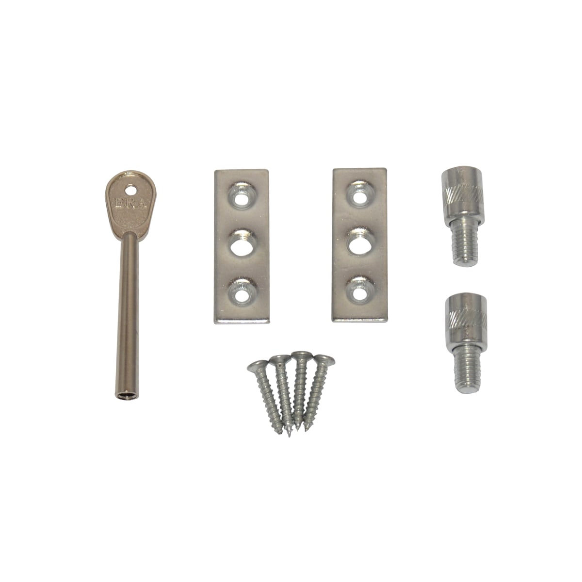 Doors & Joinery > Ironmongery > Door Locks & Security > ERA Sash Window Stop with Standard Keys 51 x 17mm Satin Pack of 2