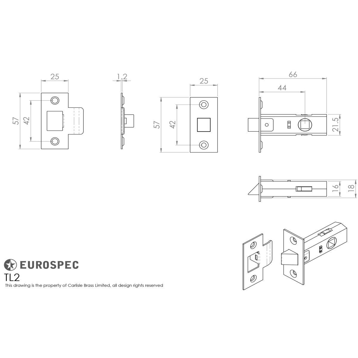 Eurospec Tubular Latch 64mm in a nickel plated finish is made of a high-grade brass material with a steel casing that ensures a durable life. The product is suitable for sprung handles on the backplate and also handles on rose using a thumb turn. This Lock has a reversible bolt making the lock suitable for right or left hinged doors. This product is CE marked for it is quality and environmental management systems.