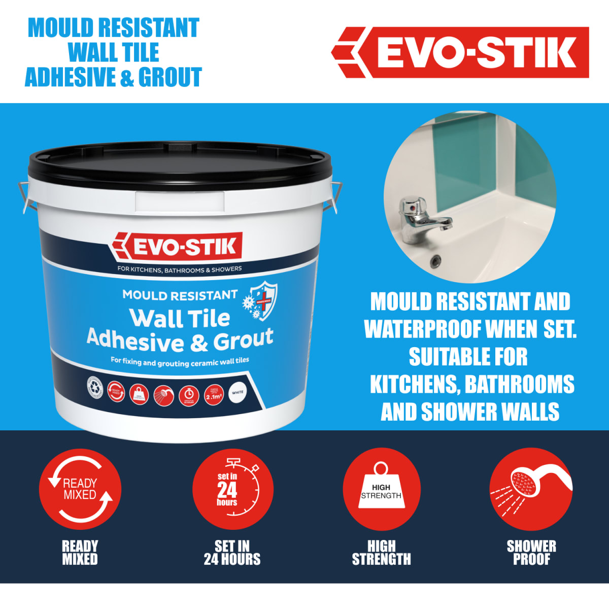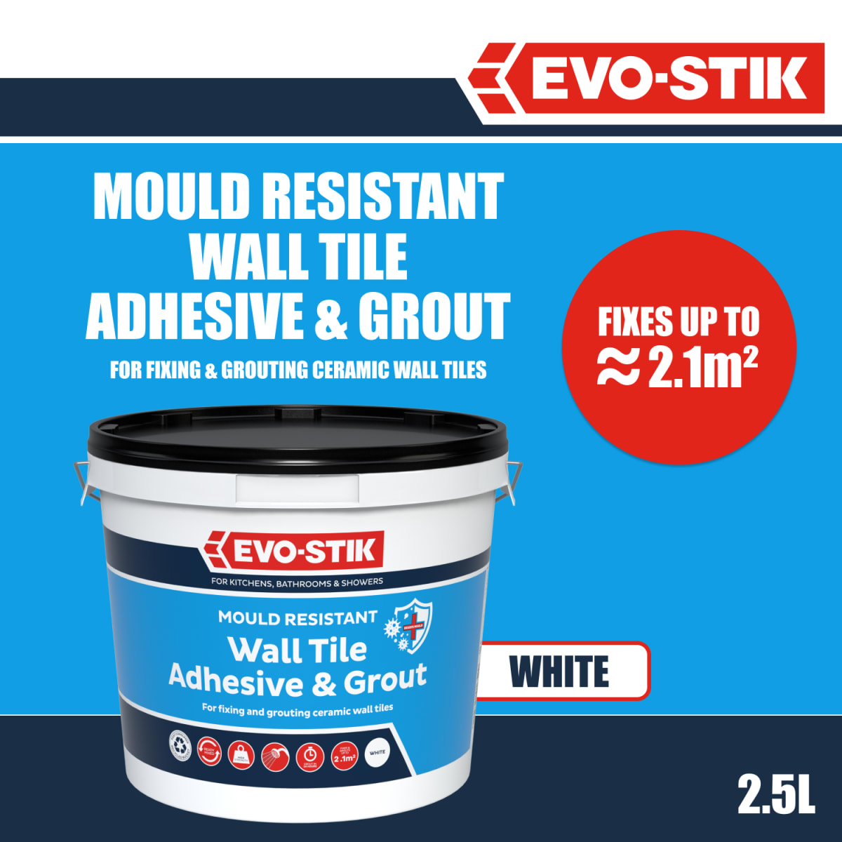 Kitchens & Bathrooms > Kitchen & Bathroom Tiles > Grouting & Tile Accessories > Evo-Stik Mould Resistant Standard Wall Tile Adhesive & Grout 2.5L White