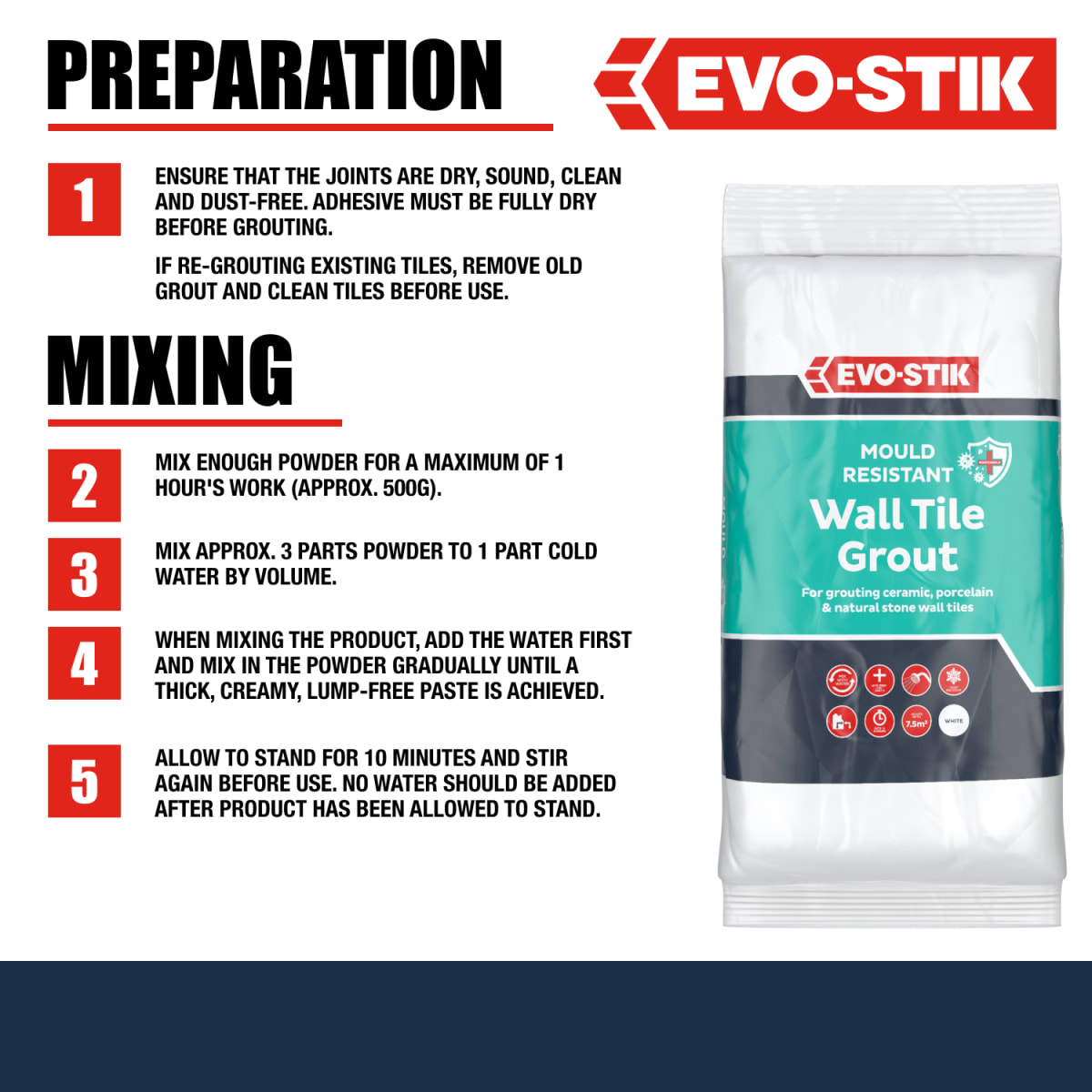 | Product Name | Evo-Stik Powdered Wall Tile Grout 1.5kg White |