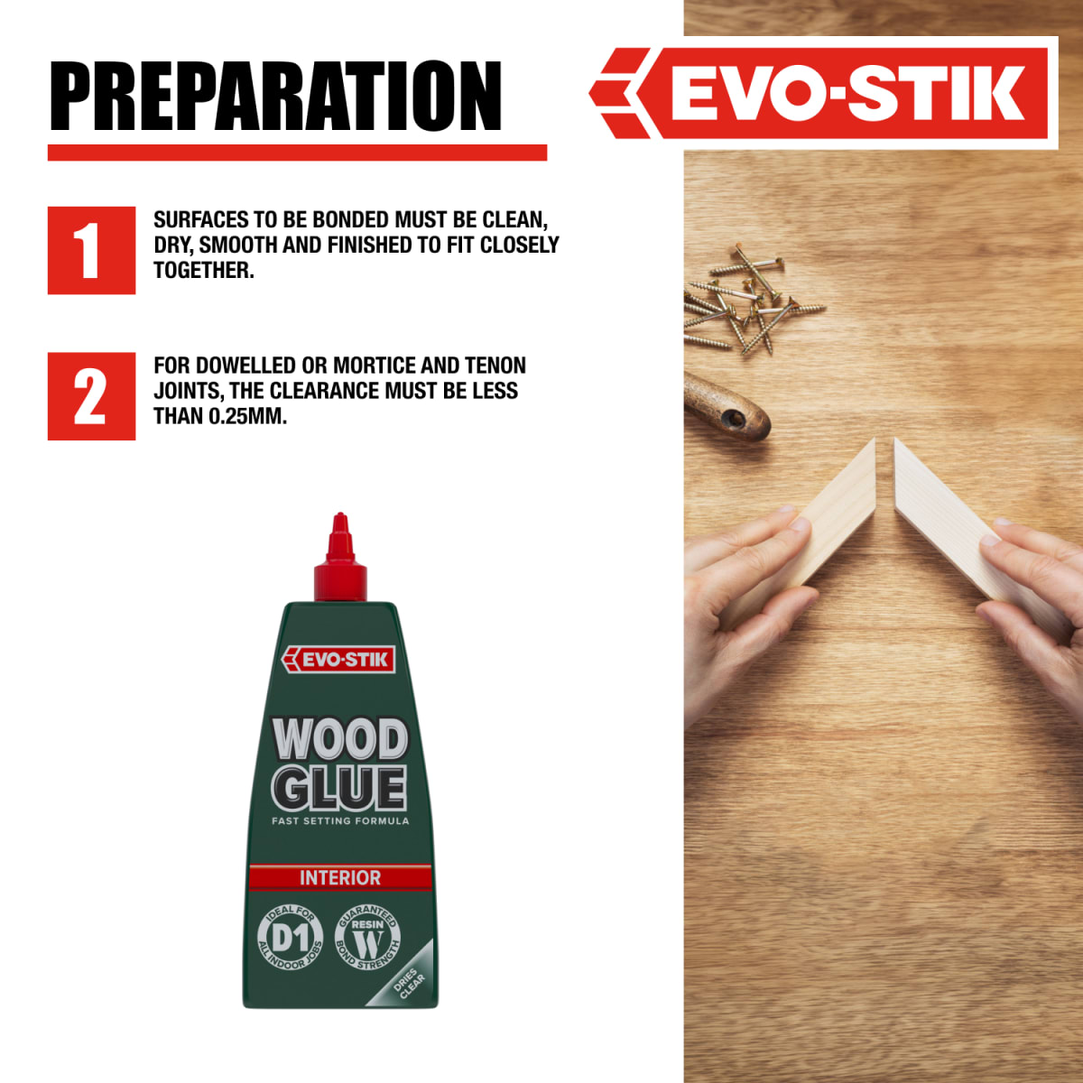 - Fast setting, extra strong, interior adhesive that dries to form a bond stronger than the wood itself