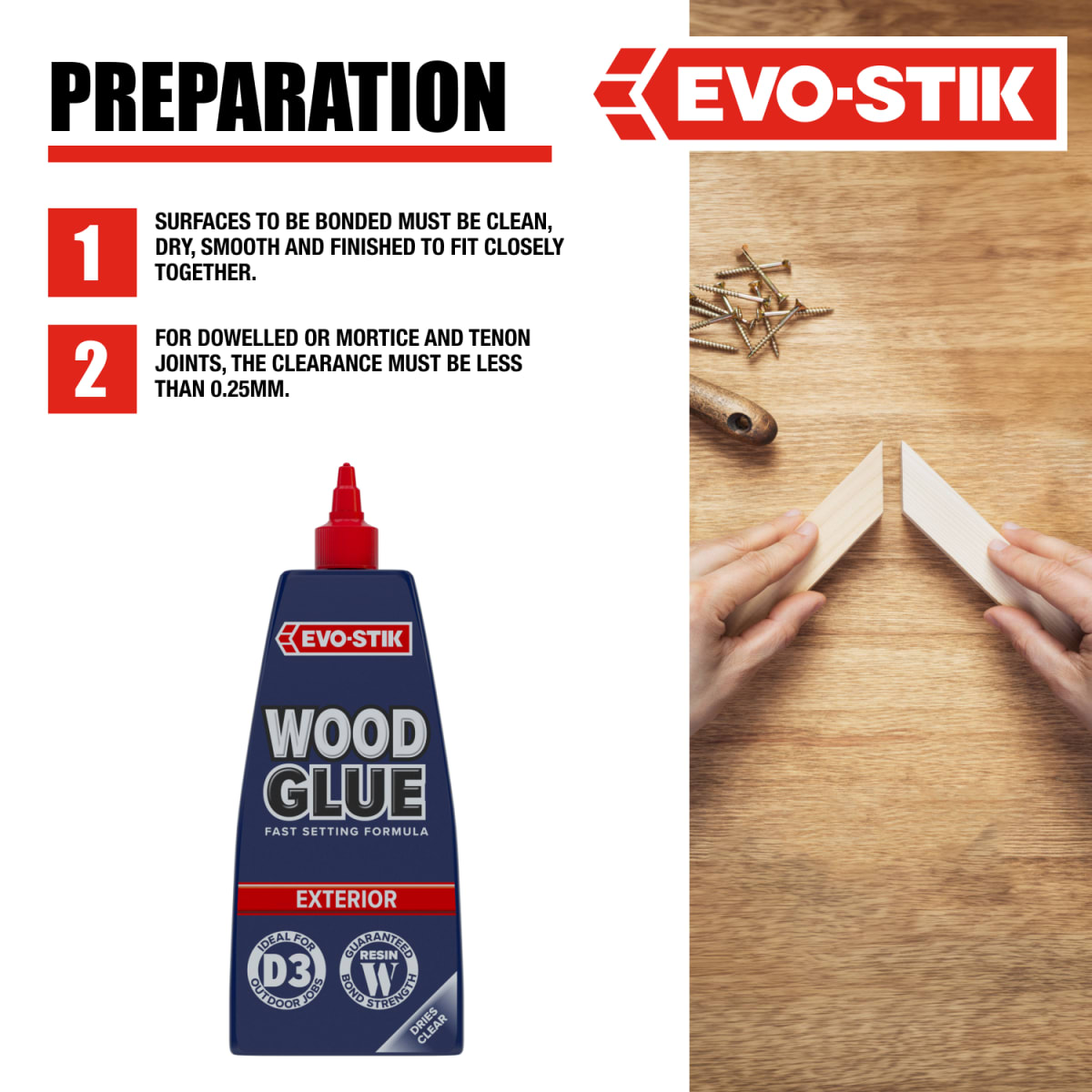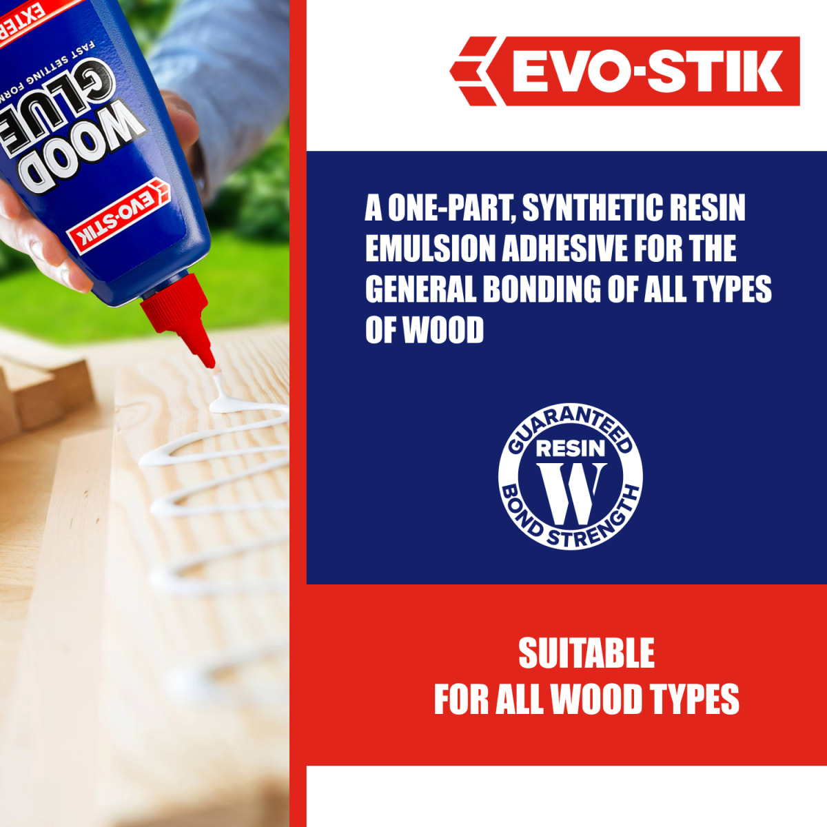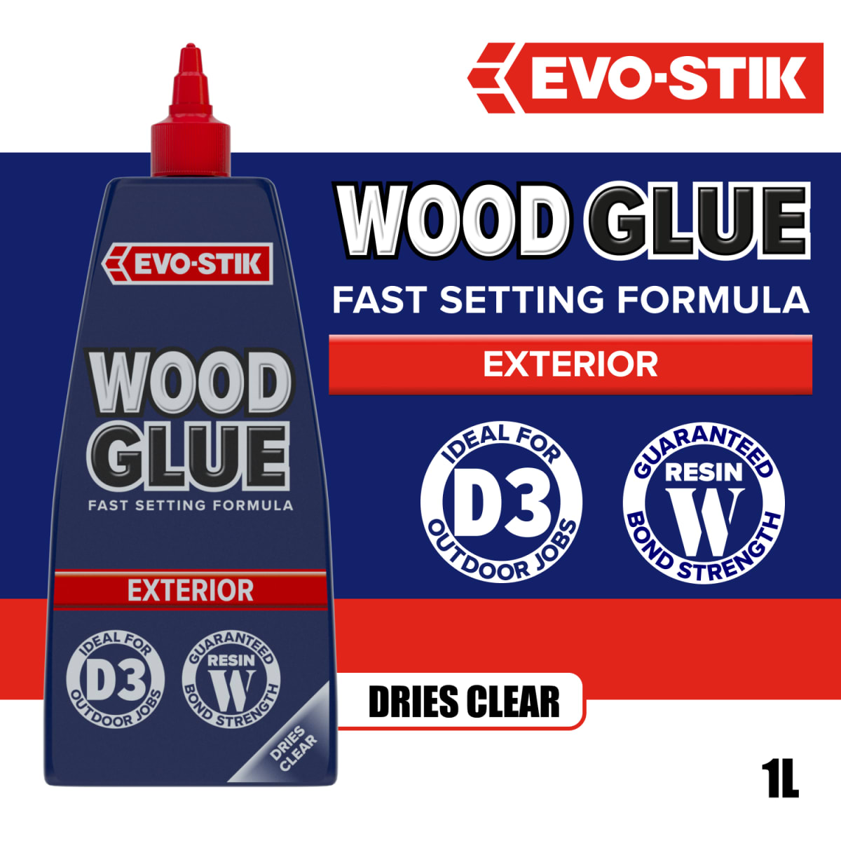 The Evo-Stik Resin 'W' Extra Fast Wood Adhesive 1L is an extra-strong wood adhesive for interior and exterior use. It forms a bond stronger than the wood itself. Suitable to use with all types of wood. Ideal for constructing door and window frames. It dries clear for a seamless finish.
