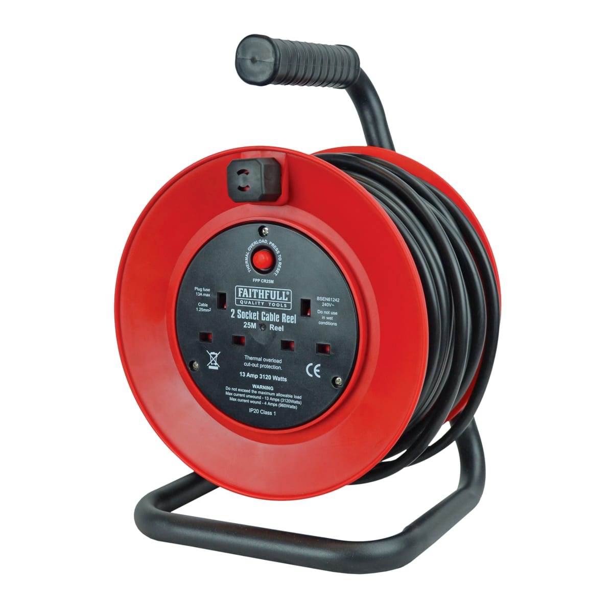 | Product Name | Faithfull 240V 2 Socket 13A Open Drum Cable Reel 25m |