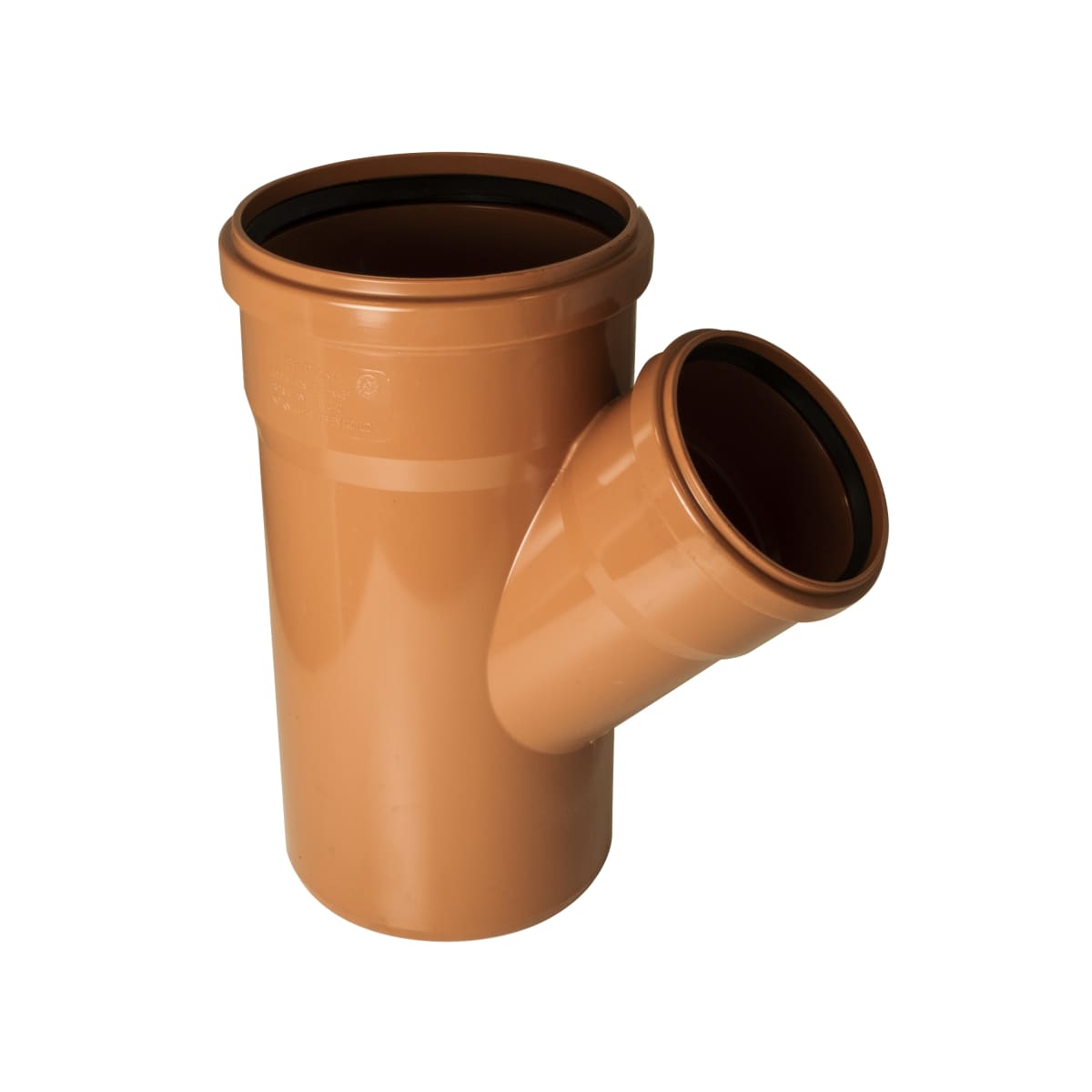 The FloPlast Underground Drainage Unequal Junction Double Socket allows the connection of 110mm underground pipes at an angle of 45° to the main 160mm body.