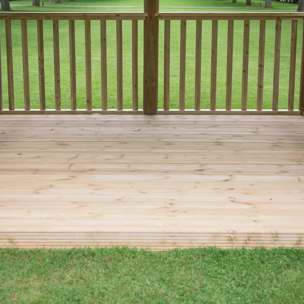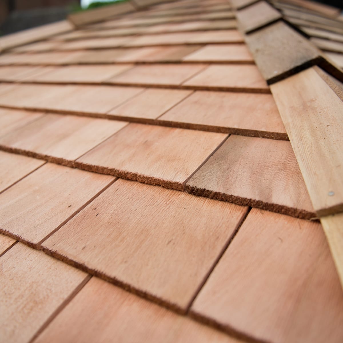 Western Red Cedar shingles are hand cut to size and fitted around the roof – placed on top of a water-proof Tricoya lining. The tiles are red in colour and give the Gazebo an elegant, contemporary look. The substantial uprights are secured to the base that features profiled deck boards, while at the top steel brackets secure them to the perimeter frame, giving the Gazebo immense strength and rigidity. Balustrade infill panels are also added to 3 sides.
