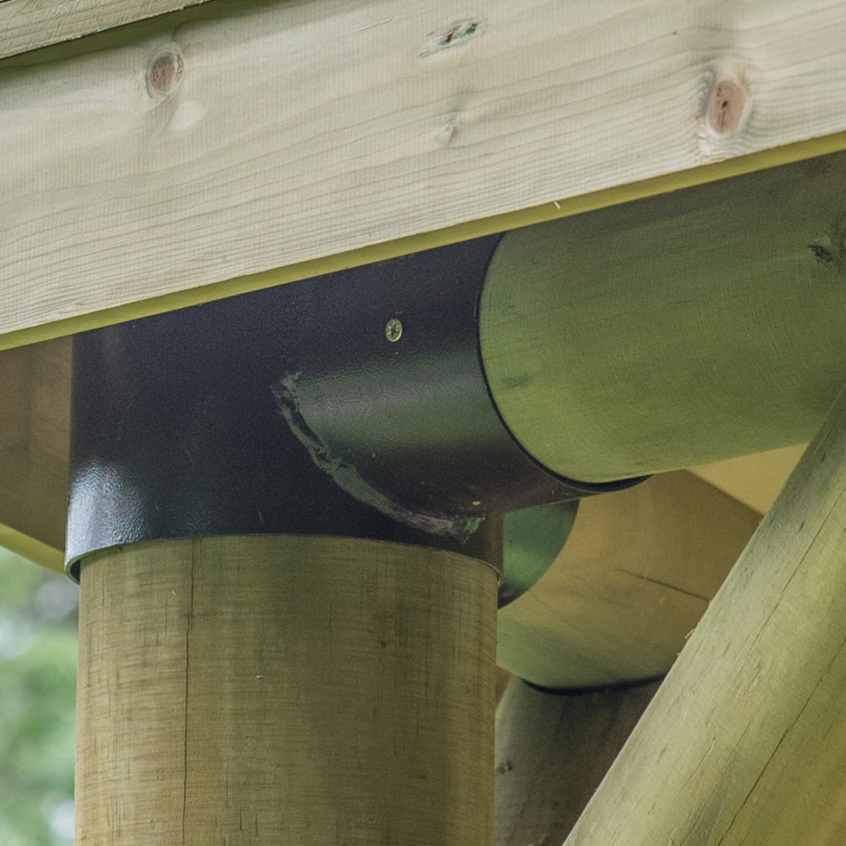 The substantial uprights are secured to the base that features profiled deck boards, while at the top steel brackets secure them to the perimeter frame, giving the Gazebo immense strength and rigidity.