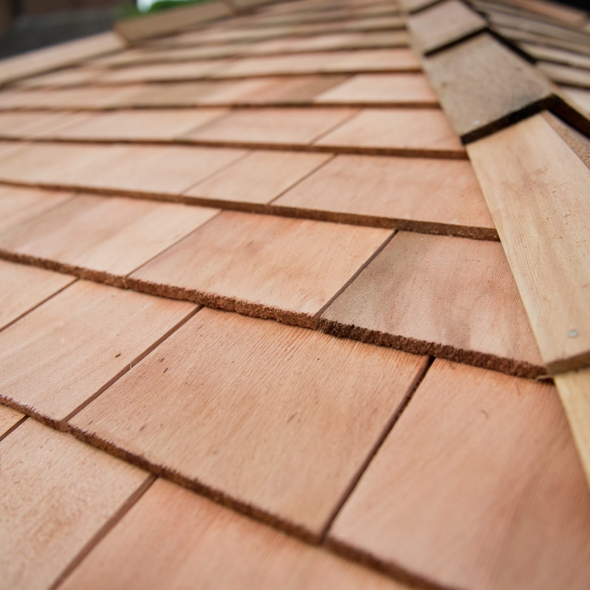 Western Red Cedar shingles are hand cut to size and fitted around the roof – placed on top of a water-proof Tricoya lining. The tiles are red in colour and give the Gazebo an elegant, contemporary look.
