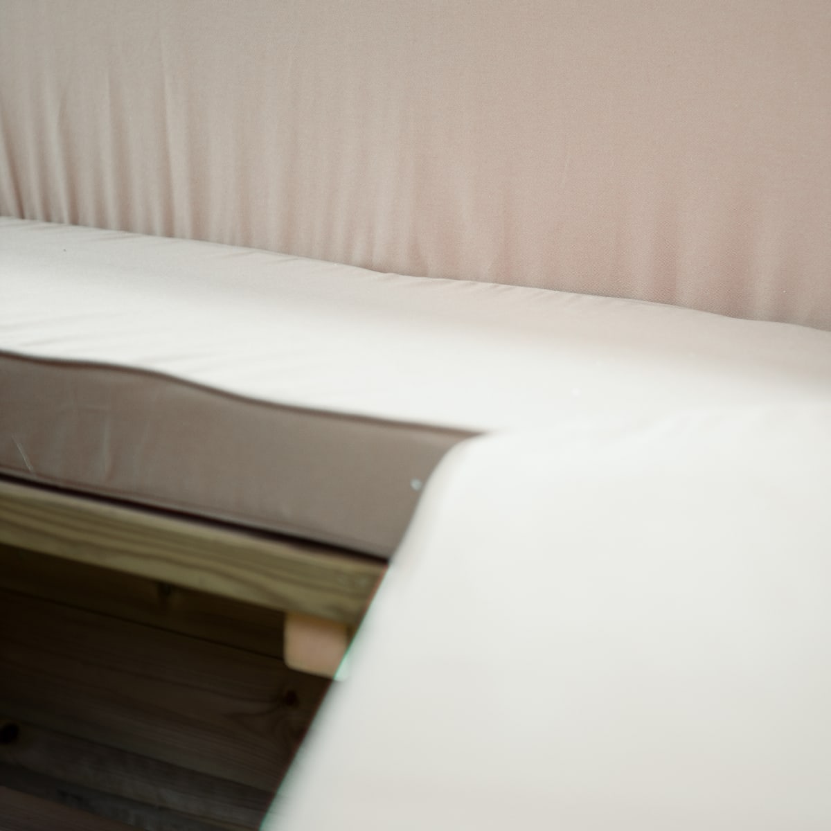 Made from quality cream outdoor canvas, the comfortable 3-inch deep cushion set is custom made to fit the corner style benches and, for added comfort, includes separate back cushions. If you want added protection from the sun or a light shower, a set of 6 matching cream roll-down curtains are available to purchase separately.