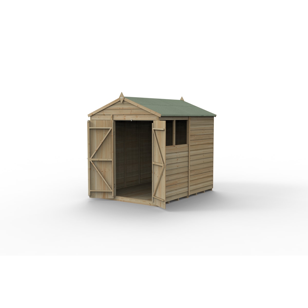 Rather than the more common OSB (oriented strand board), this garden shed features solid timber floor, allowing for the storage of heavier items. The roof of this apex shed is made from hardwearing 8mm solid sheet, finished with a green mineral felt cover for complete weatherproof protection. This shed’s double doors features a double-Z frames, for increased strength and to prevent door movement.