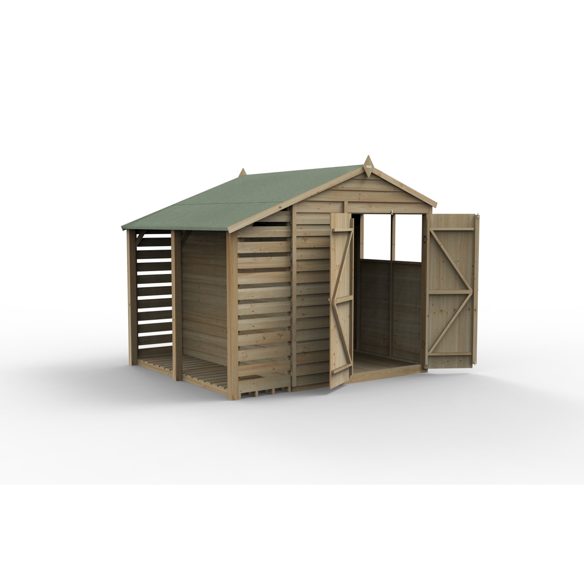 All in all, the Forest 4Life range of sheds are the best overlap sheds we've ever made. Supported by 30%-thicker framing than found on most wooden sheds, this shed with lean too is constructed using straight-cut 7mm boards that overlap to give flexibility, allowing natural movement of the timber during the changing seasons and aiding rain water run-off.