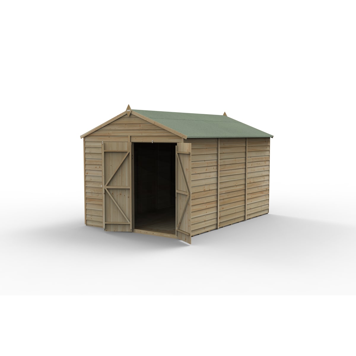The Forest 4Life Overlap Apex Shed will help keep your garden clutter free and offers a secure space for you to store garden equipment. Its fantastic size, increased headroom and double doors make it an ideal workshop space.