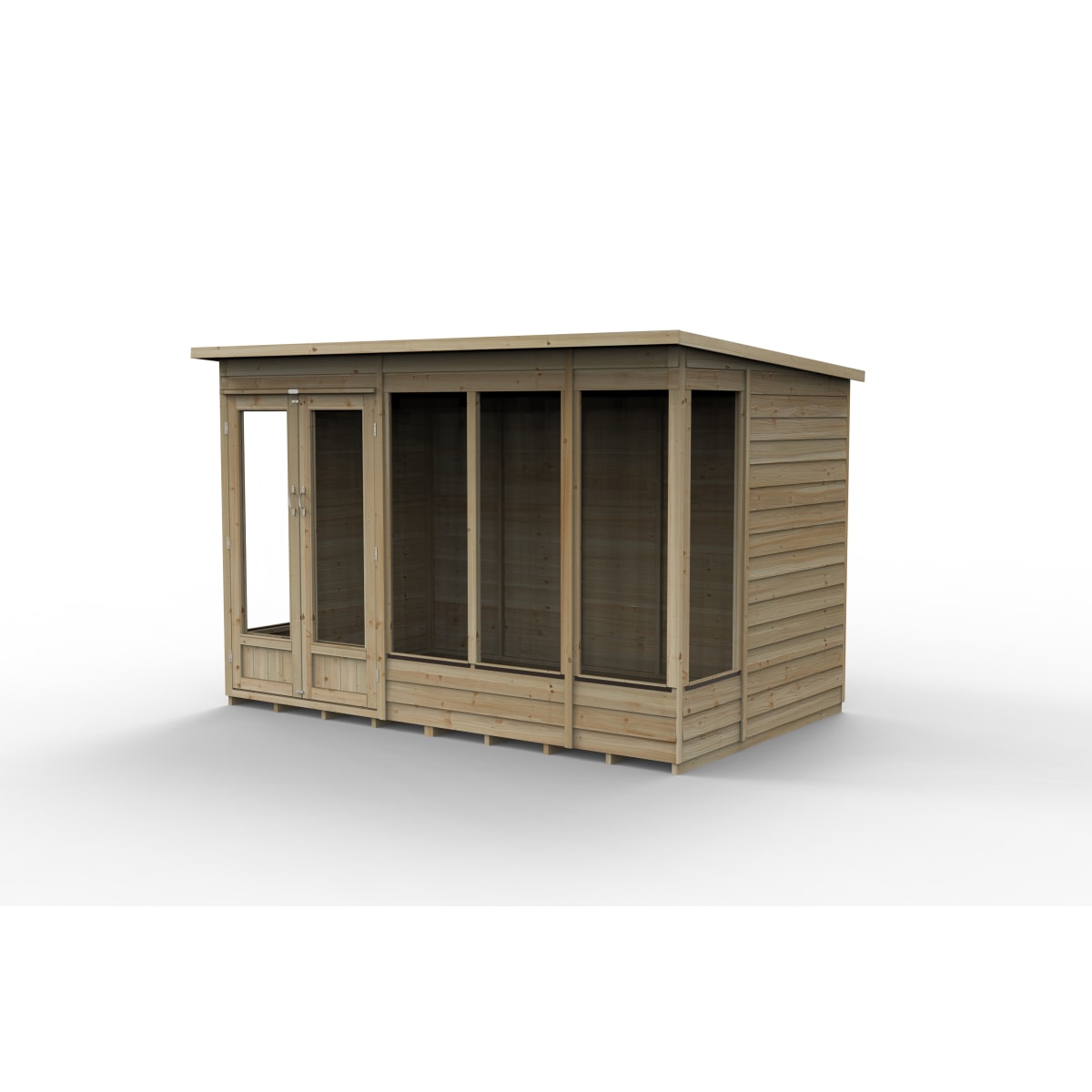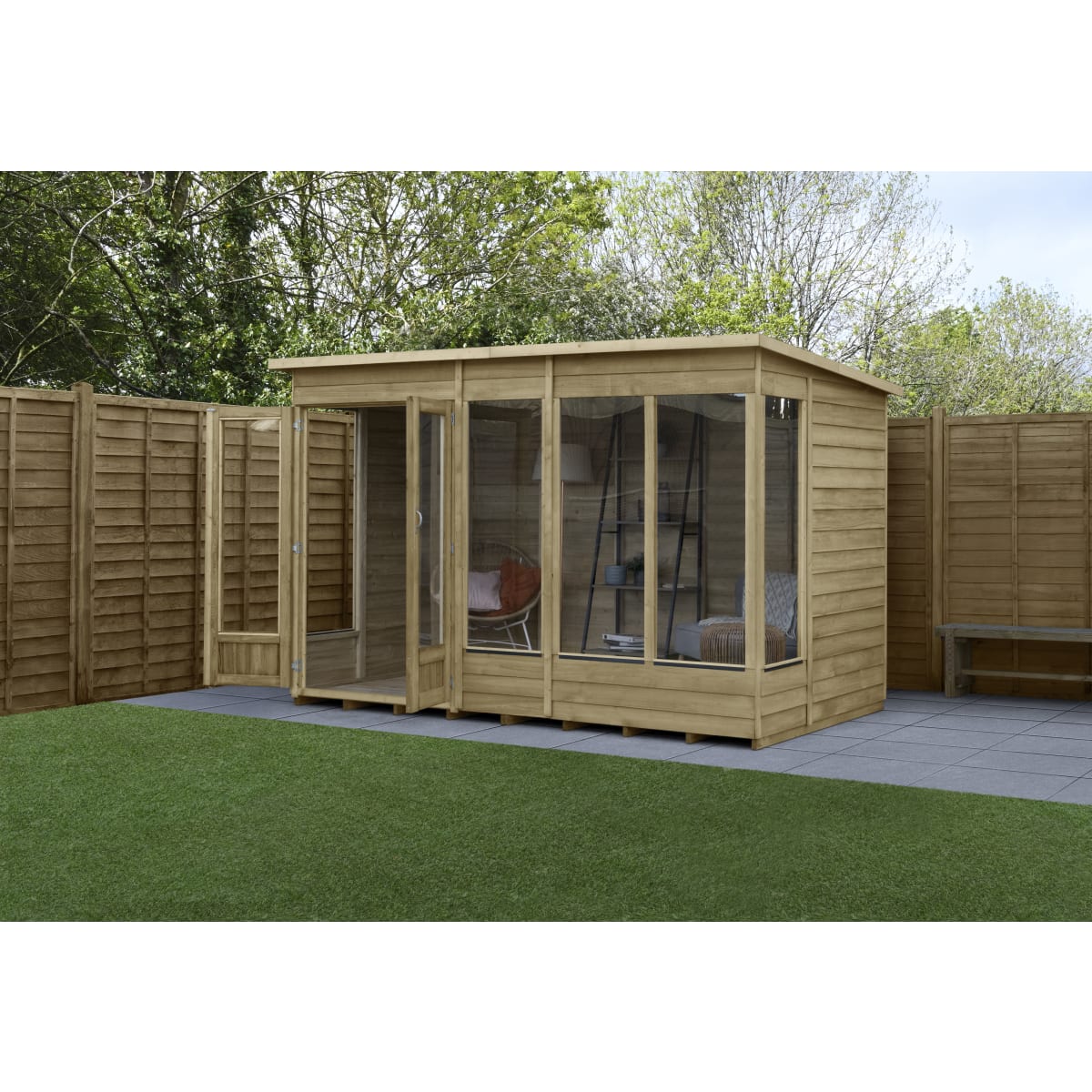 All in all, the Forest 4Life range of summerhouses are the best overlap summerhouses we've ever made. The pressure treatment that has been applied gives this summerhouse a 25-year anti-rot guarantee as standard, giving you maintenance freedom, preservative treatment is NEVER needed! You'll only ever need one summerhouse with a 4Life summerhouse! Rather than the more common OSB (oriented strand board), this summerhouse features solid timber floor, allowing for the storage of heavier items. The roof of this pent summerhouse is made from hardwearing 8mm solid sheet, finished with a green sand-felt cover for complete weatherproof protection.