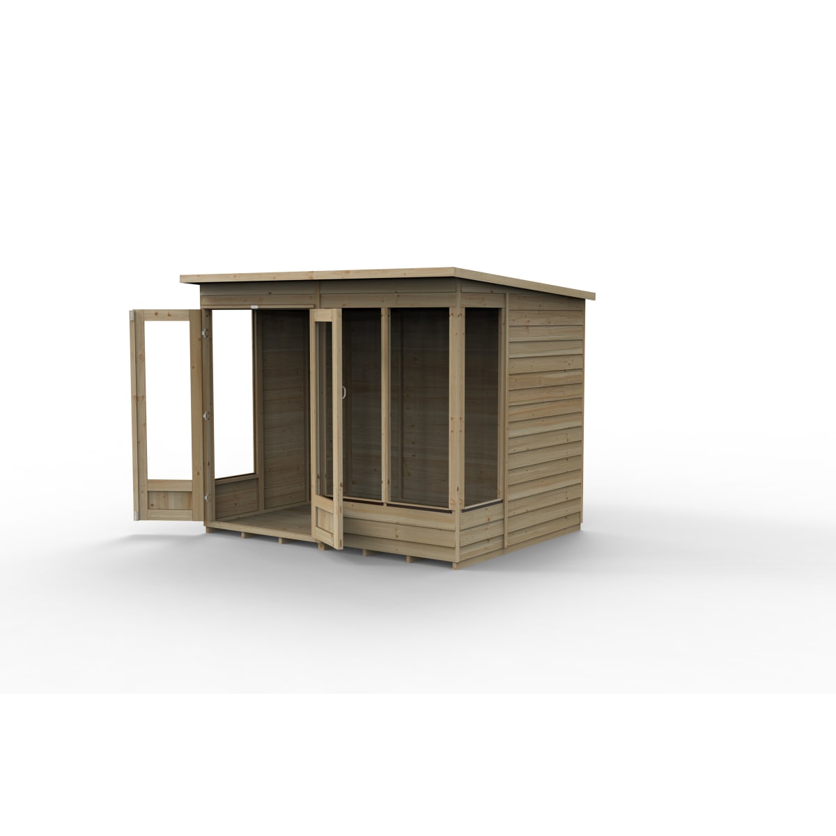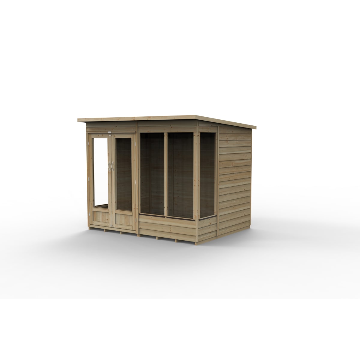 IDLSF4LF60 Landscaping > Garden Buildings & Structures > Summerhouses > Forest Garden 4LIFE Pent Summerhouse 8x6 Double Door 4 Window - Installed