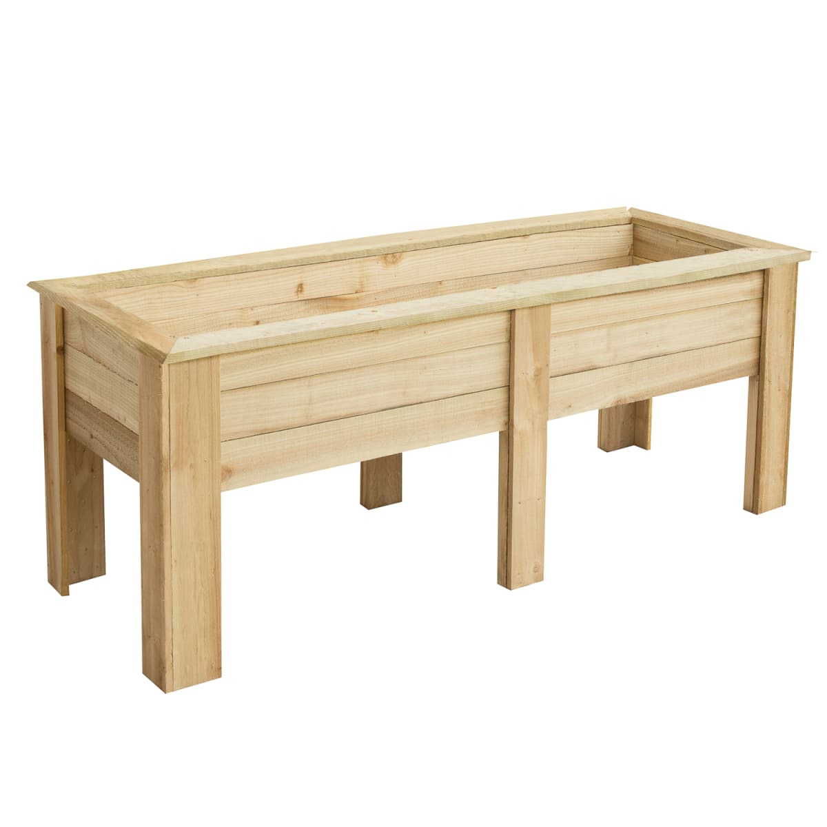 The 1.8m Large Kitchen Garden Planter from Forest Garden is designed with the perfect planting depth for growing herbs and salads plus the attractive design means it will look great in any garden setting.This generous sized planter has an internal planting length of 165cm, width of 55cm and depth of 29cm. The planter raises the plants up to a convenient height of around 70 - 90cm making it easy to crop and tend to them. There is also plenty of room to include all the herbs you are likely to need, including thyme, sage, parsley and chives, as well as companion plants and salad crops like lettuce and pak-choi. Just remember to plant any mint in a pot to prevent it from spreading. The planter is also ideal for creating a display of decorative flowering plants.Supplied with instructions and screws for assembly, this Kitchen Garden Planter is very quick and easy to assemble, needing just 3 screws in each leg and 4 in each corner to secure the top surround. We recommend lining the planter with a suitable porous membrane before filling with compost, especially if you are using to grow edible produce. Holds approximately 271 litres of compost.Manufactured in the UK from UK grown FSC® certified timber which has been pressure treated to protect against rot and has a 15 year anti-rot guarantee. If using to grow food produce we recommend lining the bed/planter with a membrane before adding the soil.