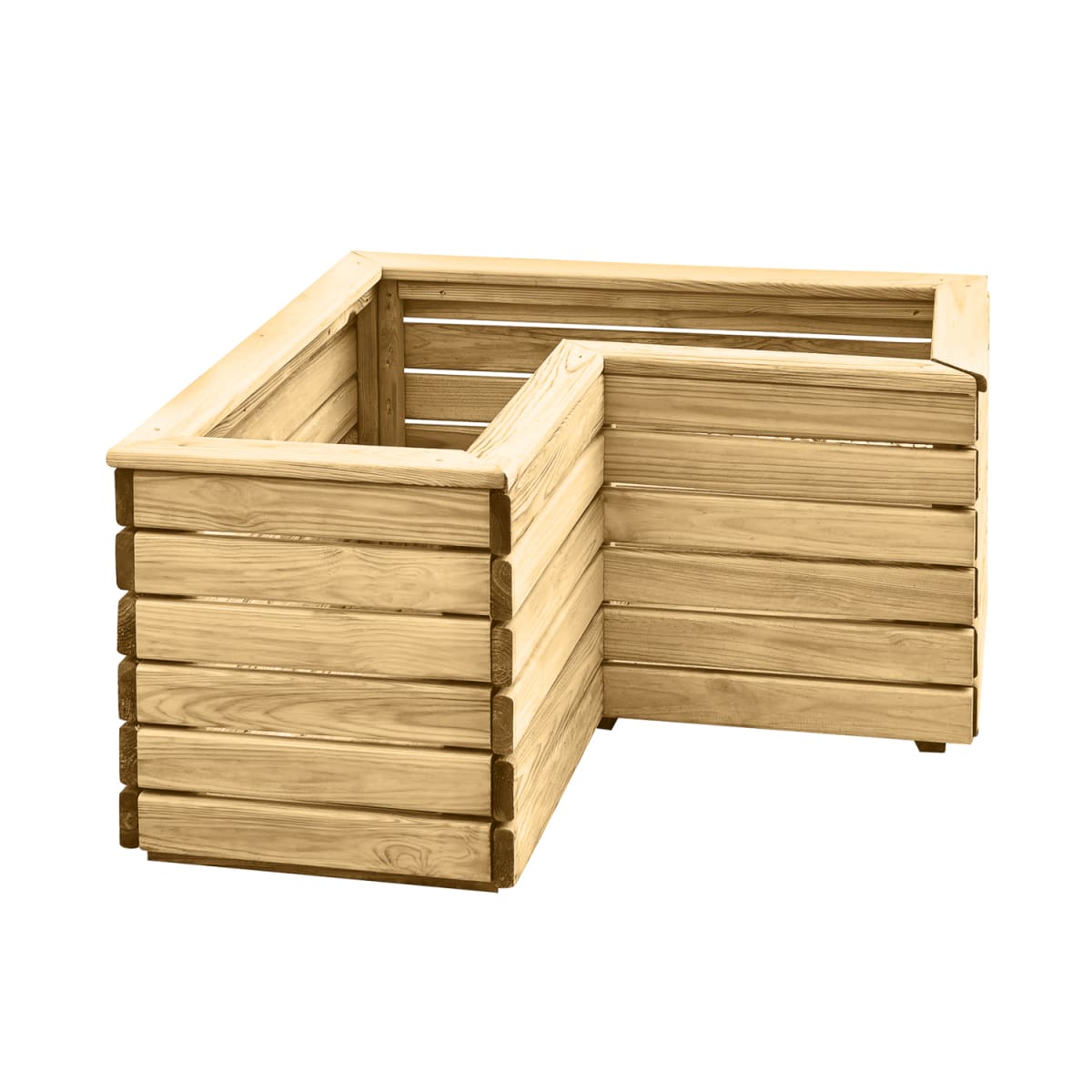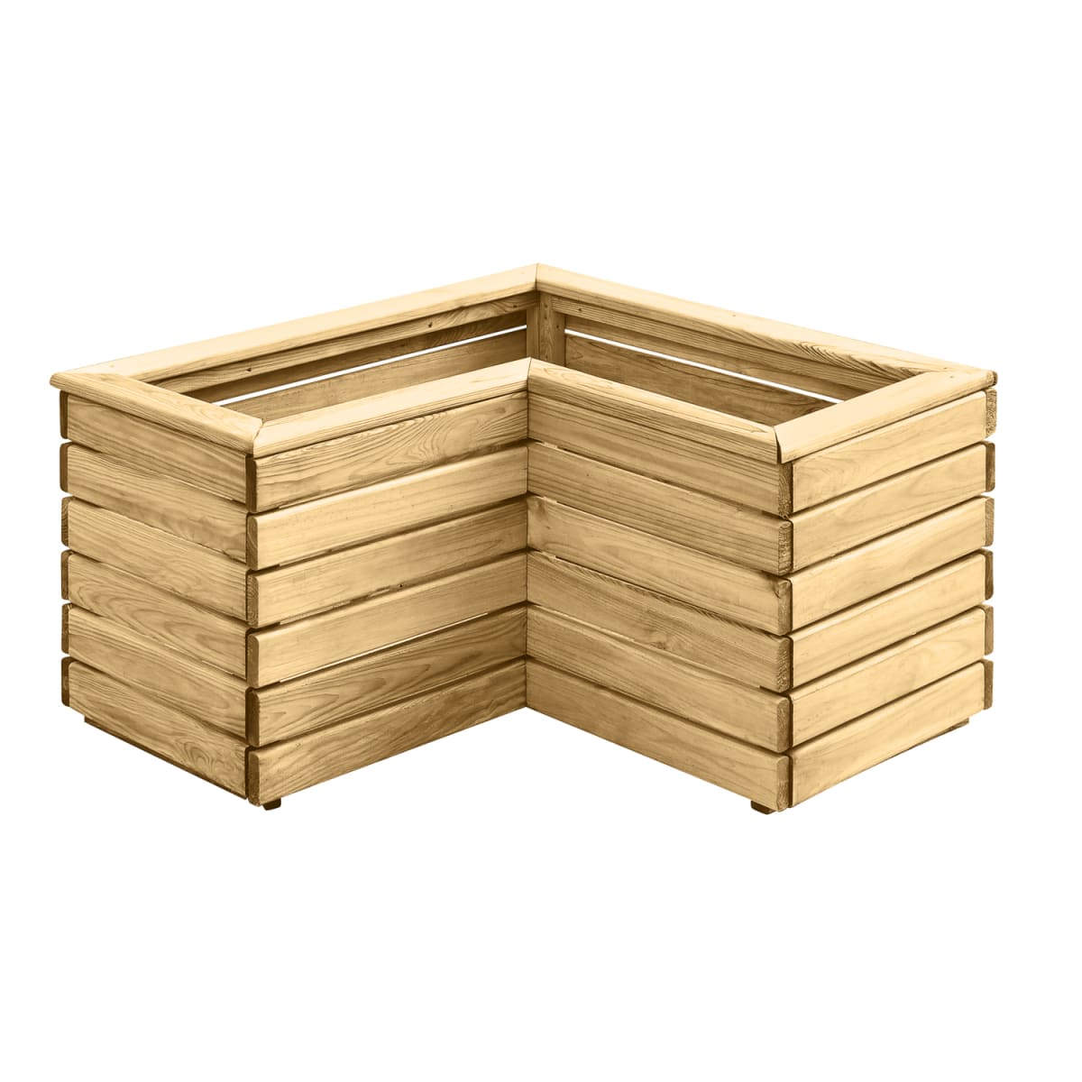 Transform an unloved corner of your garden with Forest's contemporary style Linear Corner Planter. Ideally sized for a variety of decorative shrubs such as box, standards, miniature firs and will look beautiful when filled with flowering plants. The planter has a modern look, with strong horizontal lines and natural timber colouring, it’s sure to add interest and structure to any garden. This Linear Corner Planter will add a focal point in any garden corner. The timber used is smooth-planed and Pressure Treated with a preservative to protect it against rot. The planter is kept off the ground by Pressure Treated battens. The planters each come with a porous lining to keep soil and moisture in and ensure your plants thrive.