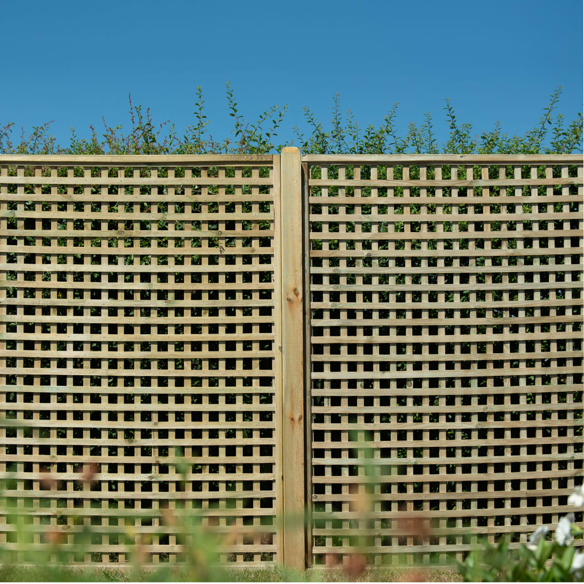 - High quality 1.8m x 1.8m chequered pattern trellis that can be used for screening or as a garden feature suitable for climbing plants