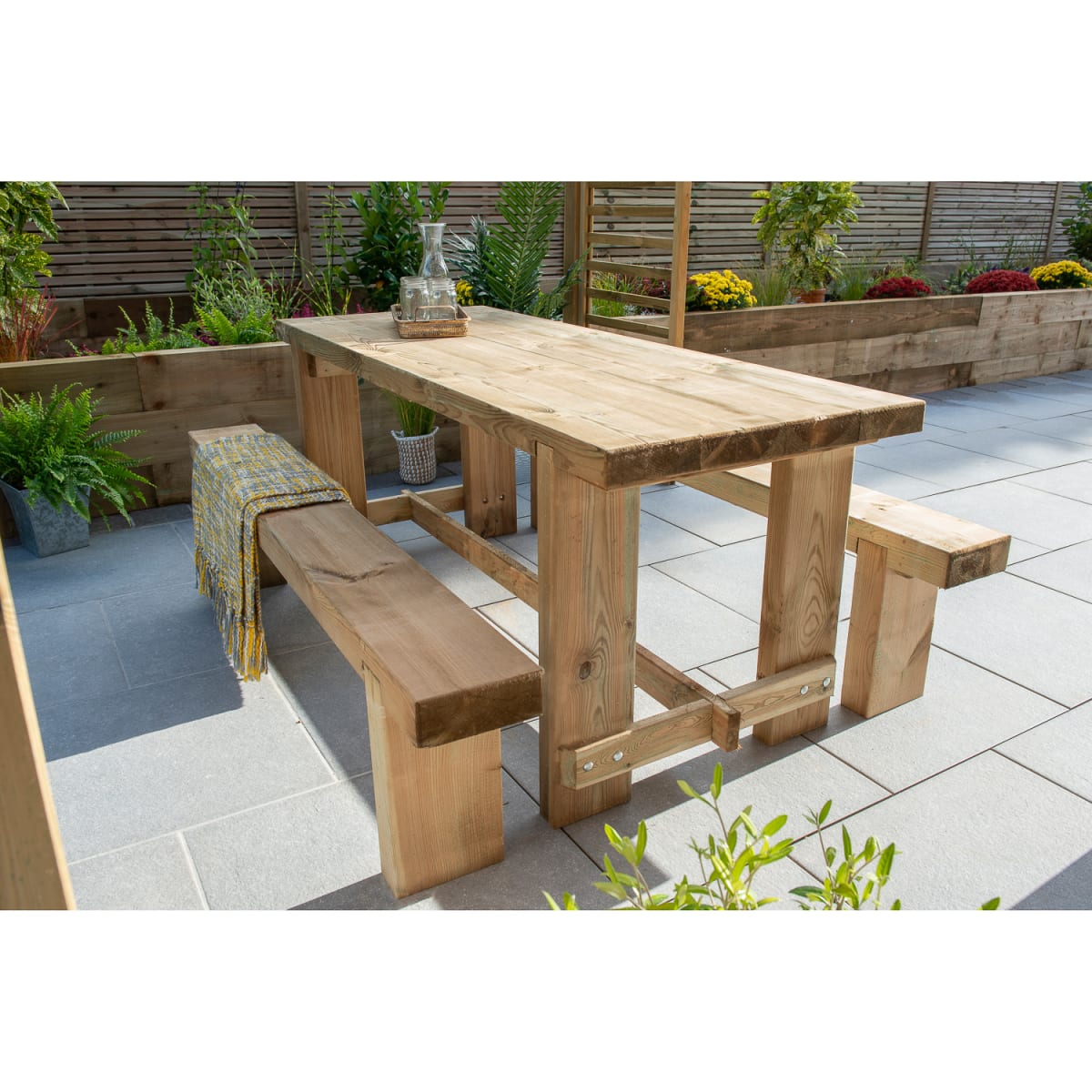 - Using the Refectory Table & Sleeper Bench Set 1.8m from Forest is a great way to make the most of your garden during the summer months
