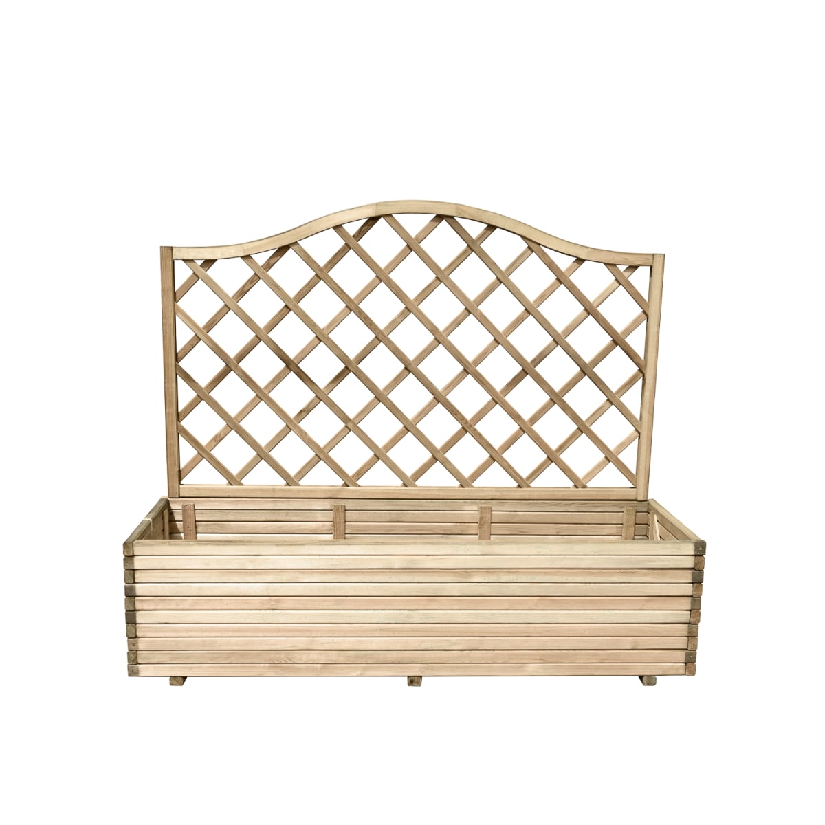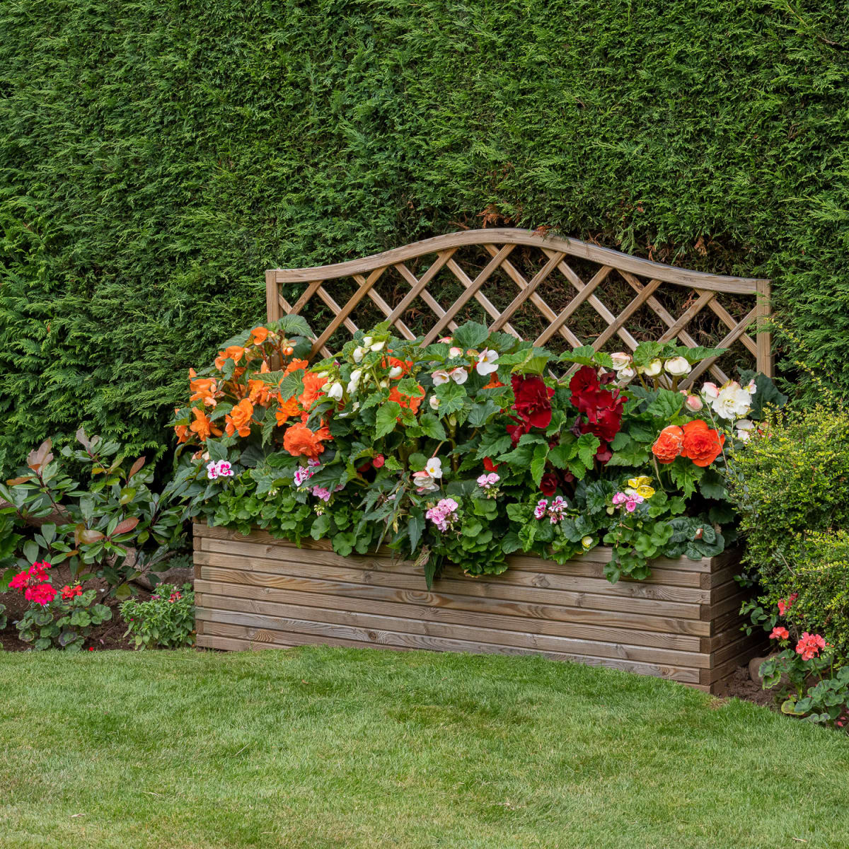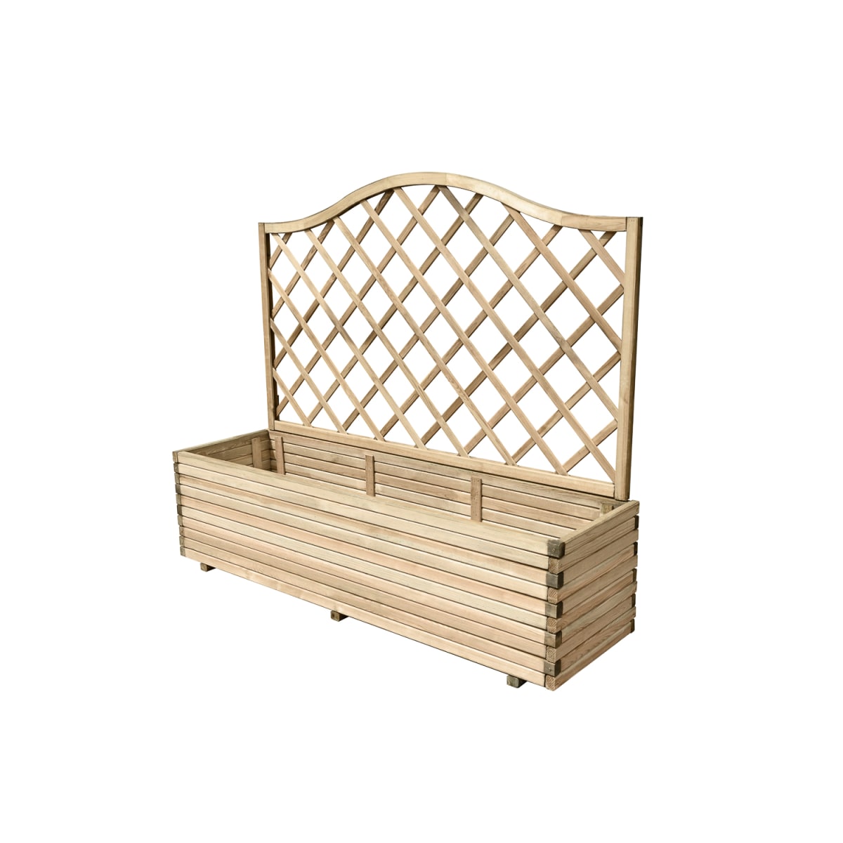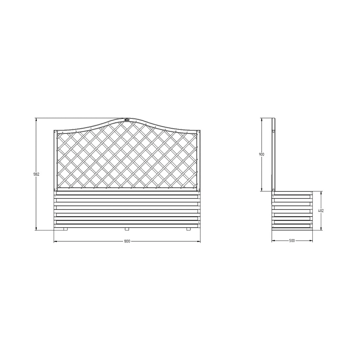 Combine practicality with style with the large Venice Planter from Forest. This planter has a beautiful integrated dome top diamond trellis that is not only aesthetically pleasing but will support the growth of climbing plants.All timber used to manufacture this product has been Pressure Treated to give it a guarantee against rot and fungal decay for 15 years. The trough can hold an impressive 404L of compost, so there is plenty of room for a multitude of plants, flowers or even vegetables. Delivered to you flat packed with easy to follow step-by-step instructions and all the fixings you need for a simple build. If using to grow food produce it is recommend lining the bed/planter with a membrane before adding the soil.