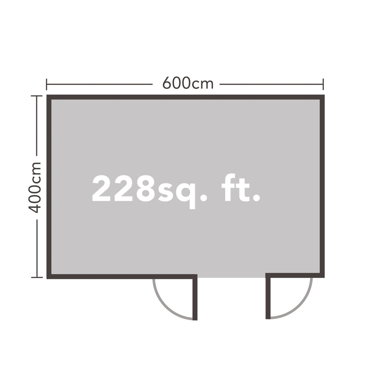 Forest Garden's Wolverley Log Cabin is the largest pent roof model in the range. It's footprint of 6 metres wide x 4 metres deep gives it a huge internal floor area of 21 square meters (228 square feet) which make it ideal for a multi-use building whether you need extra living space, a large office or plenty of room for recreational activities such as a home gym, workshop, hobby room or combination of these.