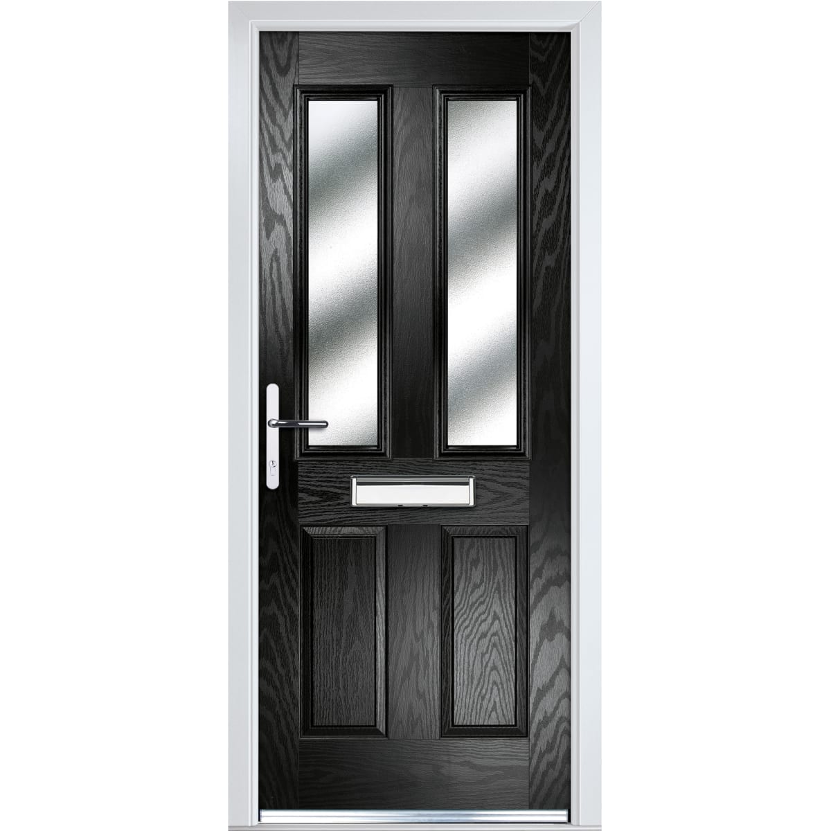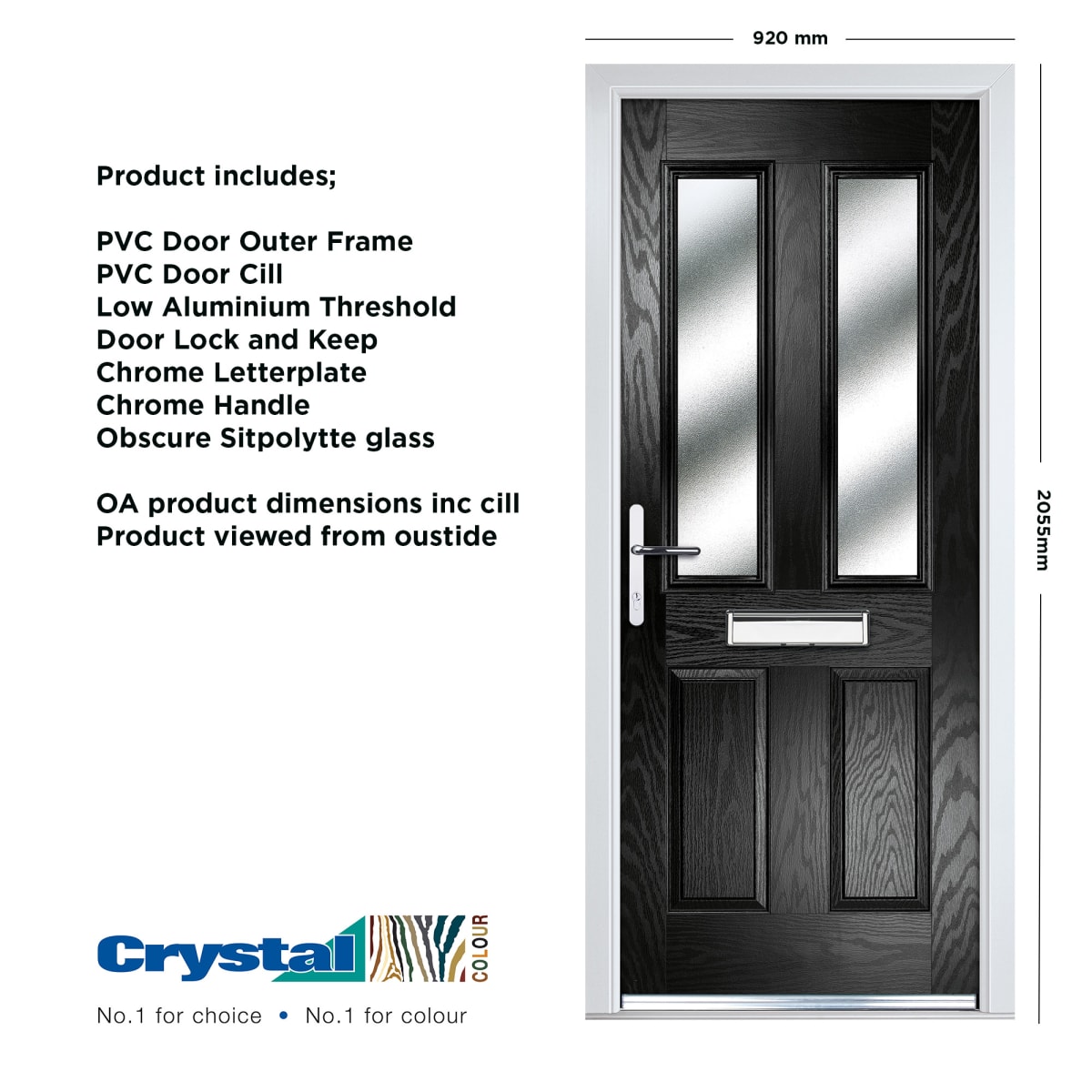 | Product Name | Crystal Four Square Composite Door 920 x 2055mm Two Glass Right Hand Obscure Glazed Black |