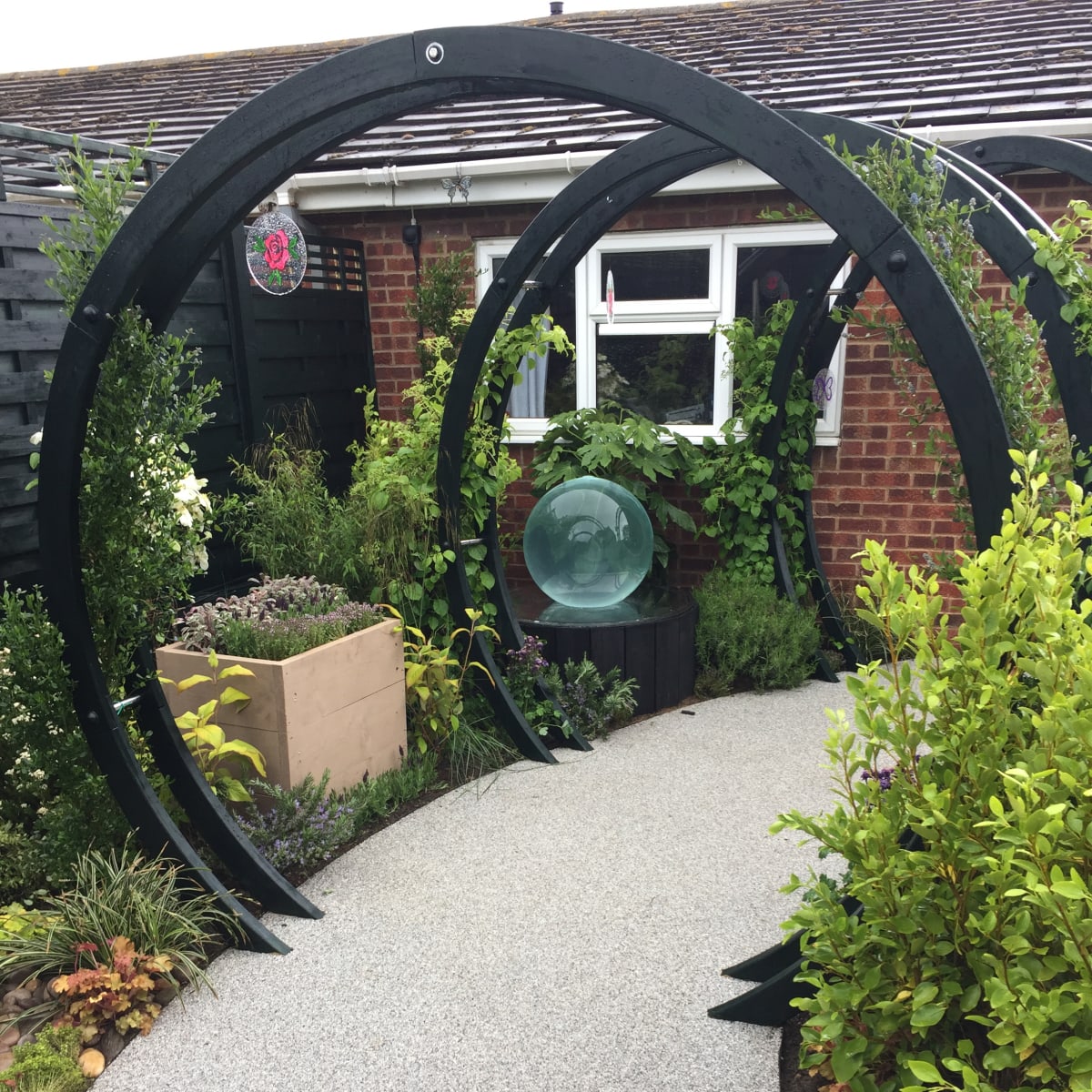 The contemporary Flower Circle is constructed using two pressure-treated timber rounded beams closely connected with stainless steel rods to create a sculptural archway. This versatile product can be used singularly or with multiples to create a unique pathway.