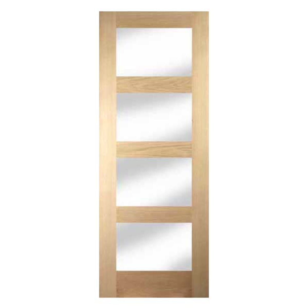 Doors & Joinery > Internal Doors > Internal Oak Doors > Kermos FSC Oak Door 4-Panel Shaker Clear Glazed 1981 x 762 x 35mm