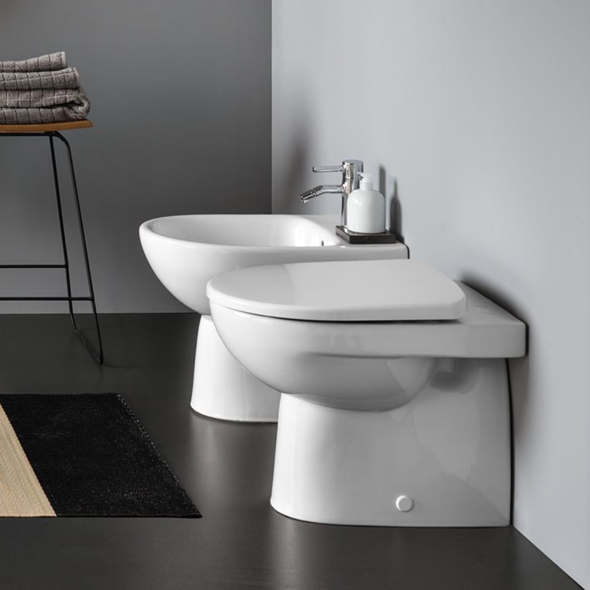 Selnova WC Seat compatible with Geberit Selnova Pans. Made of hardwearing white Duroplast. Fastening distance 15.5cm - Fastening from below.