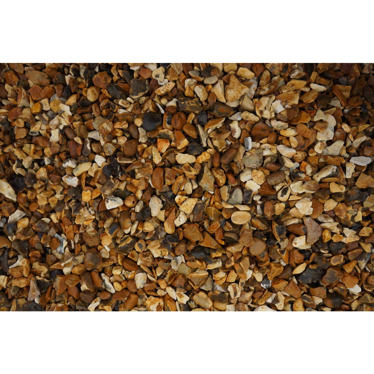 Golden Gravel 20mm Size Single Trip Large Bulk Bag, is a mixture of natural stones that is flint shaped. Creates a natural pathway around patios, lawn or garden areas. The 20mm size is easy to walk on and is suited for vehicle areas. It blends in well with any other stone, brick or hard landscape products.