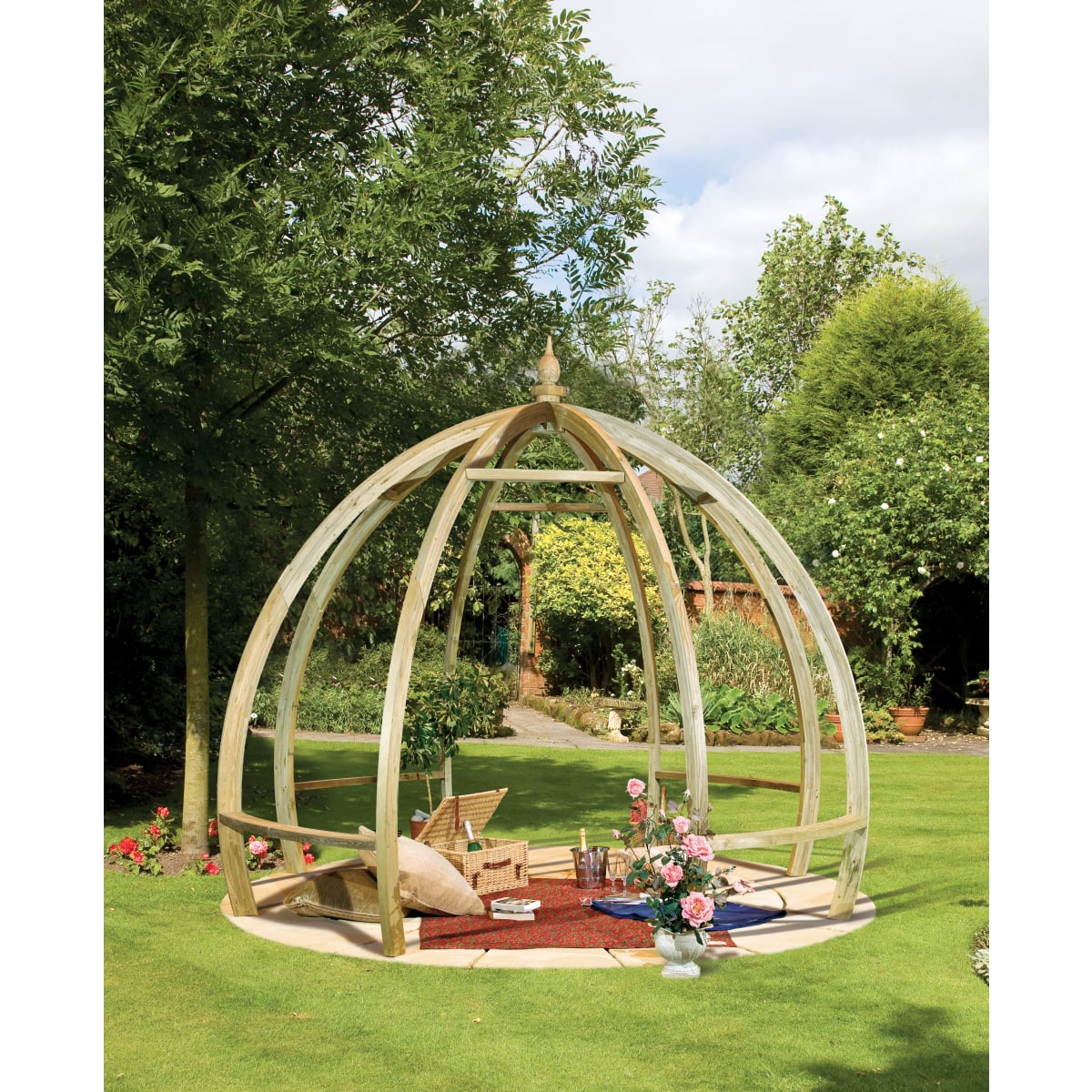 This Apollo pergola is a beautifully designed dome shaped structure. The Apollo is an elegant pergola that has been created with curved beams and rafters made from pressure treated timbers.