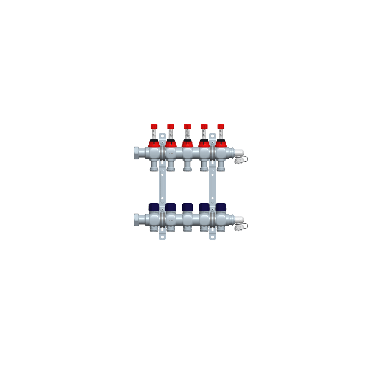 The Grant manifold is made from a high quality stainless steel and is for the distribution of hot water in radiant heating systems. The pipe loops are secured to these manifolds by the compression adapters (supplied separately). Manifolds are supplied in pairs, i.e. a flow and return manifold, together with fixing brackets.