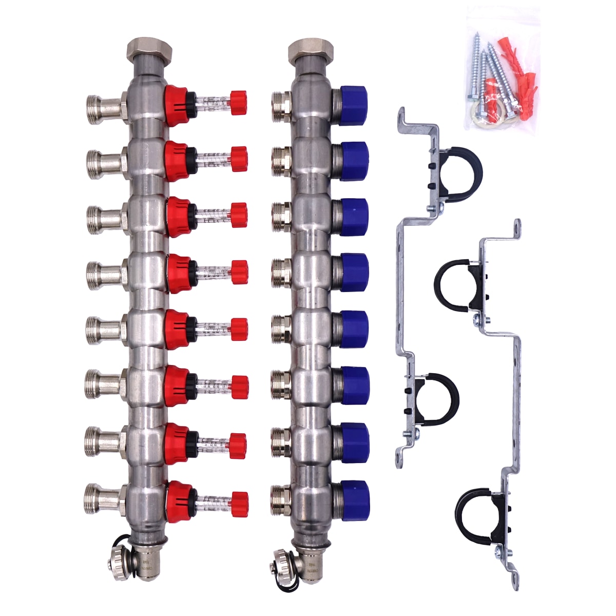 The Grant manifold is made from a high quality stainless steel and is for the distribution of hot water in radiant heating systems. The pipe loops are secured to these manifolds by the compression adapters (supplied separately). Manifolds are supplied in pairs, i.e. a flow and return manifold, together with fixing brackets.