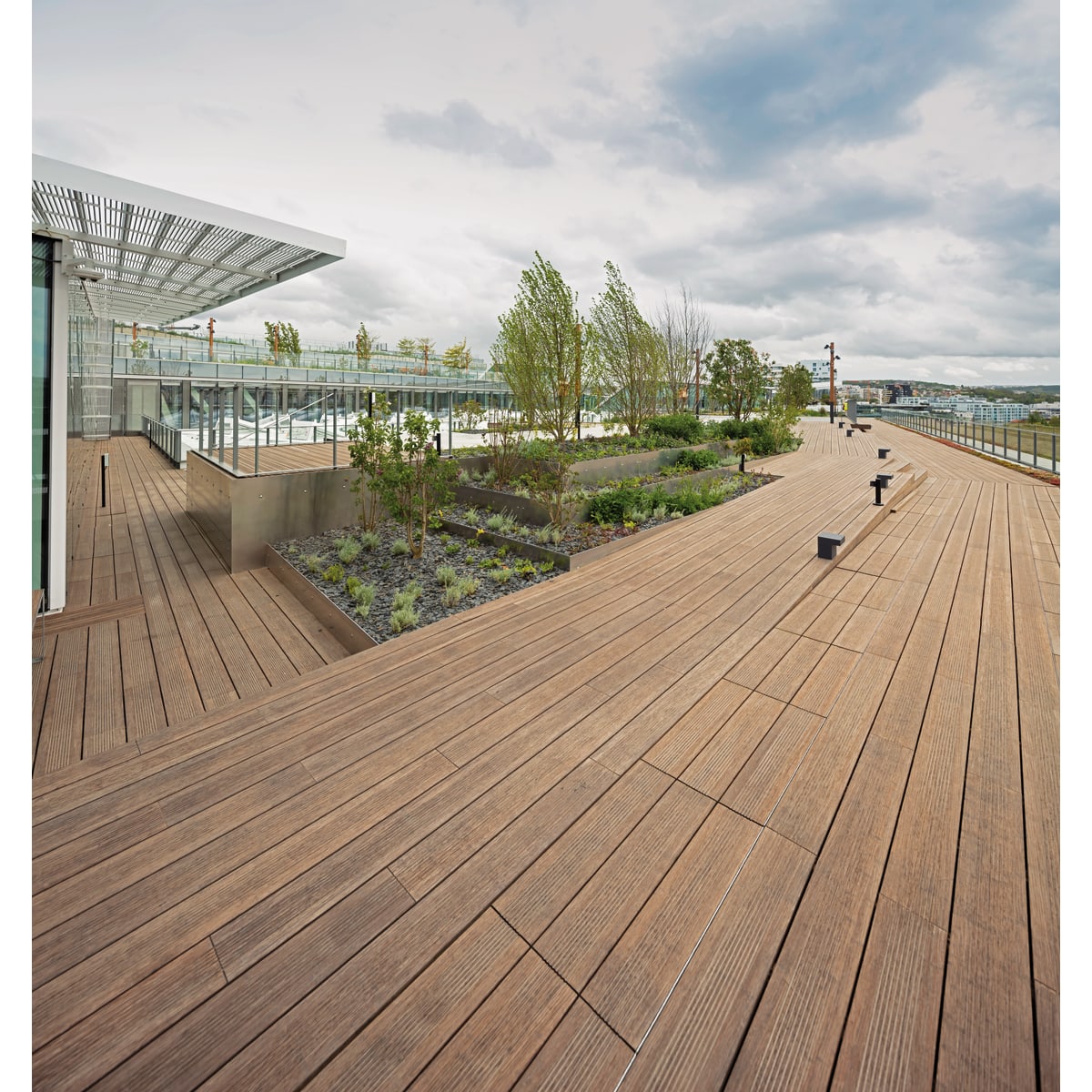 MOSO® Bamboo is a sustainable, high-performance alternative to hardwoods and composites, offering top environmental credentials, exceptional strength, and stability. Its Thermo-Density® boards, heat-treated at 200°C, deliver unmatched durability and hardness. Featuring a symmetrical design for grooved or flat surfaces and easy installation with MOSO® Fasteners, it's the ideal eco-friendly decking solution with a Euroclass B fire ratin