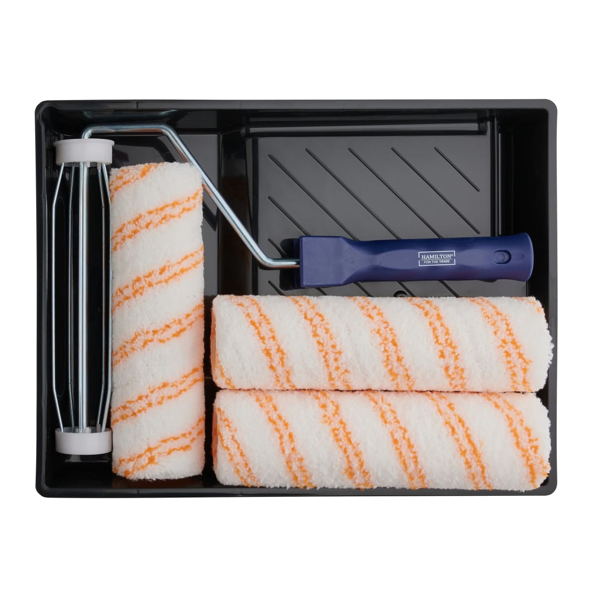 Get the job done faster with the Hamilton For The Trade 5pc 9" Roller Set – ideal for applying water-based paints on smooth to semi-smooth surfaces. This practical set includes three medium pile 9" sleeves, a sturdy 9" cage frame with a comfortable plastic grip, and a 9" roller tray.