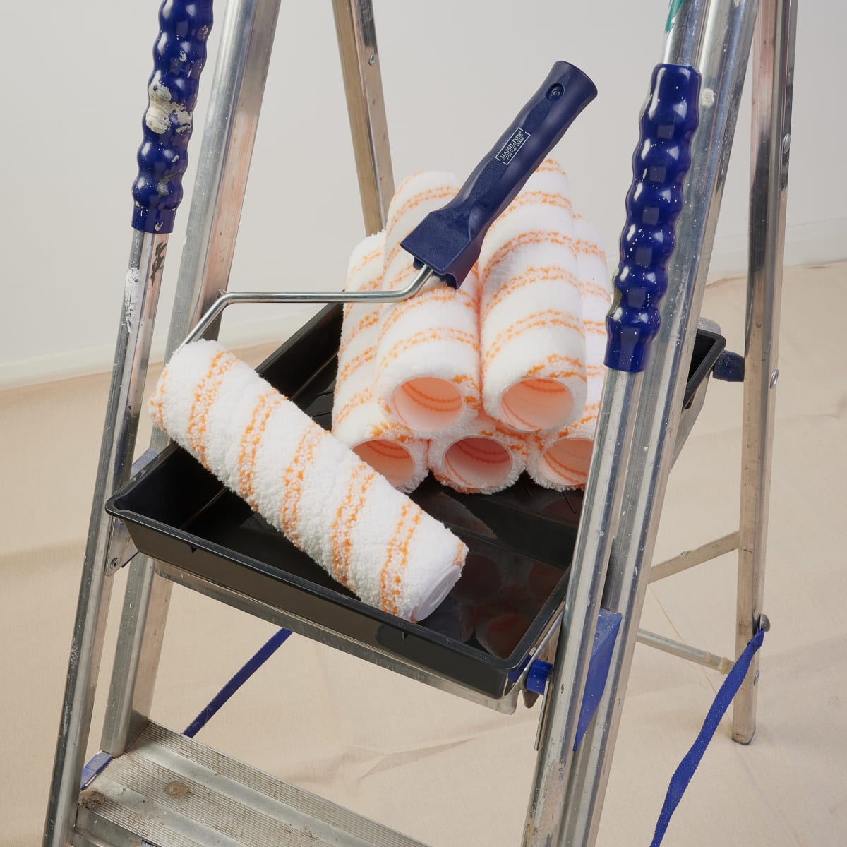 The Hamilton For The Trade 7 Piece 9″ Roller set contains poly blend medium pile roller sleeves for good paint pick-up and a smooth finish on smooth and semi-smooth surfaces. Fabric is heat-fused to the core to prevent any unwinding. Frame has a 5 wire cage for roller security. Suitable for use with emulsion, and solvent-based and water-based eggshell paints. Use a medium pile sleeve for surfaces such as woodchip or lightly patterned, or a previously painted wall.