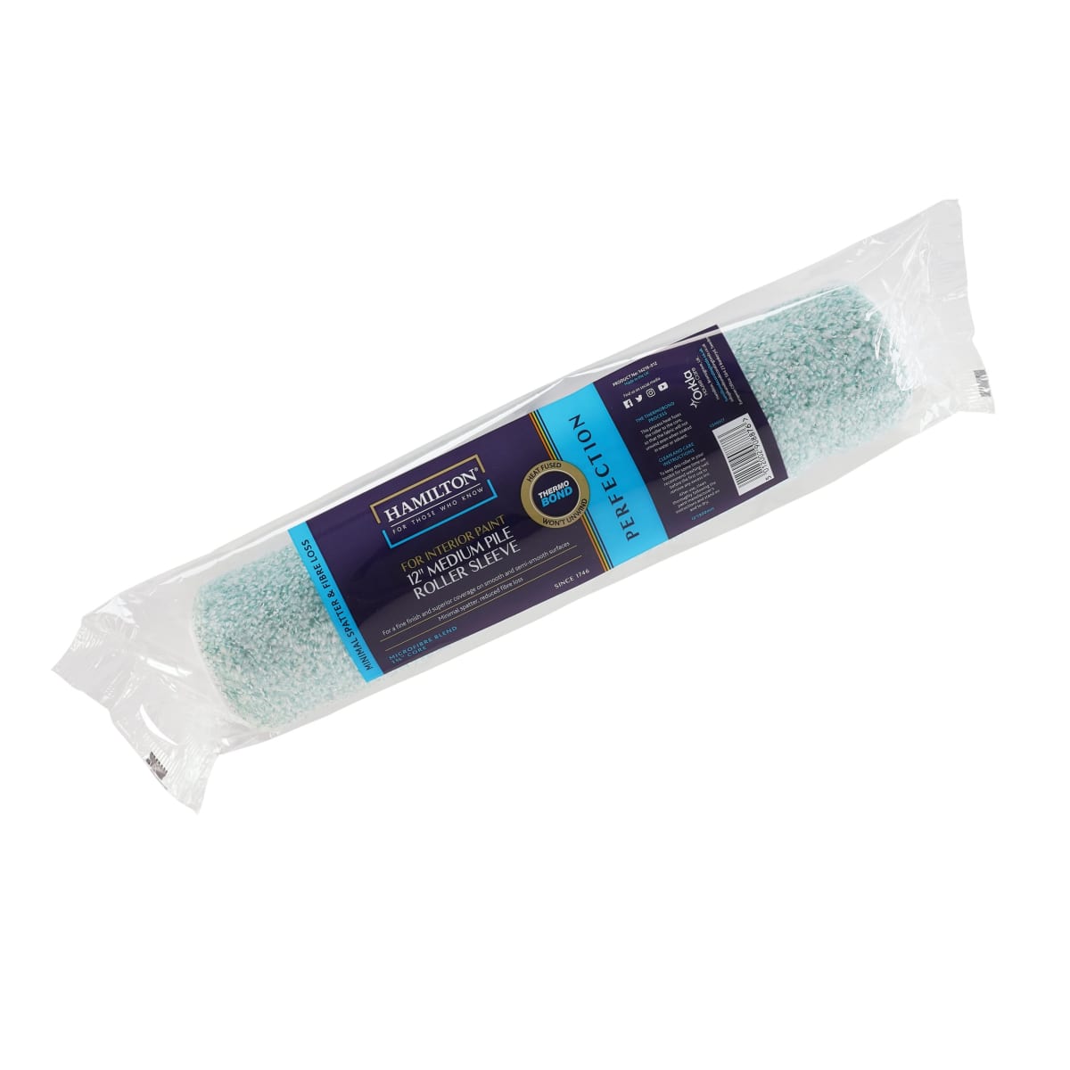 The Hamilton Perfection Medium Pile Roller Sleeve 12 x 1.75" (L x Dia) utilises high quality thermo-bonded microfiber blend fabric, to give excellent paint pick-up, great coverage and a fine, smooth finish on smooth and semi smooth surfaces. The thermo bonding method prevents unwinding of fabric, even when soaked in water/solvent. Suitable for use on smooth and semi-smooth surfaces using emulsion/solvent-based and water-based primer, undercoat and eggshell.