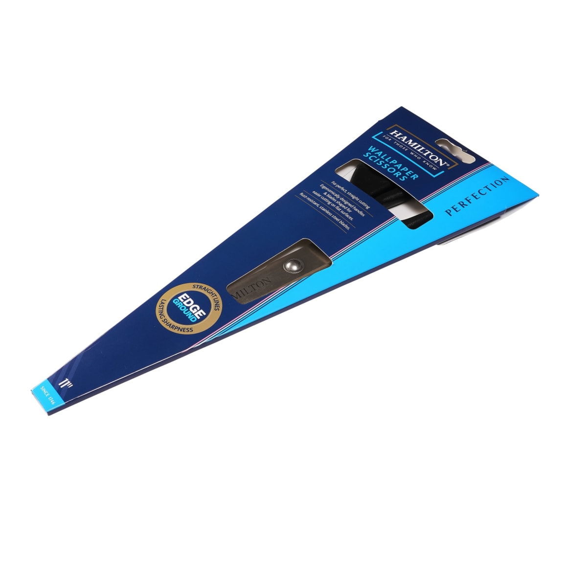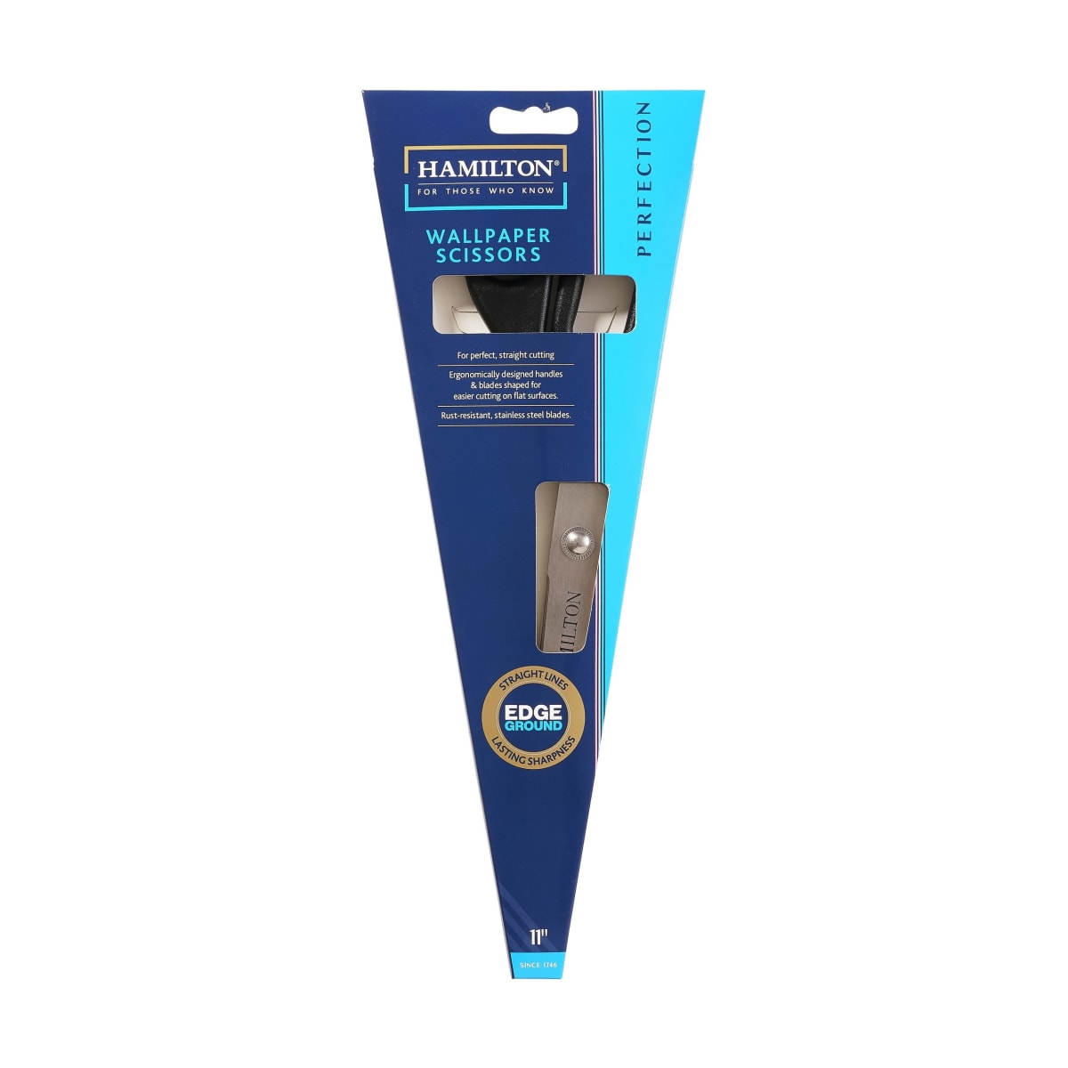 Hamilton Perfection Wallpaper Scissors 11" L is mainly used for precise cutting of wallpapers as per the user’s need on the household. The scissors cuts along the length forming narrow strips and used to trim the edges. The blade is bound to the handle making it convenient for easy cutting on flat surfaces. The blade is encased to the wooden handle with the help of solid forged bolster.
