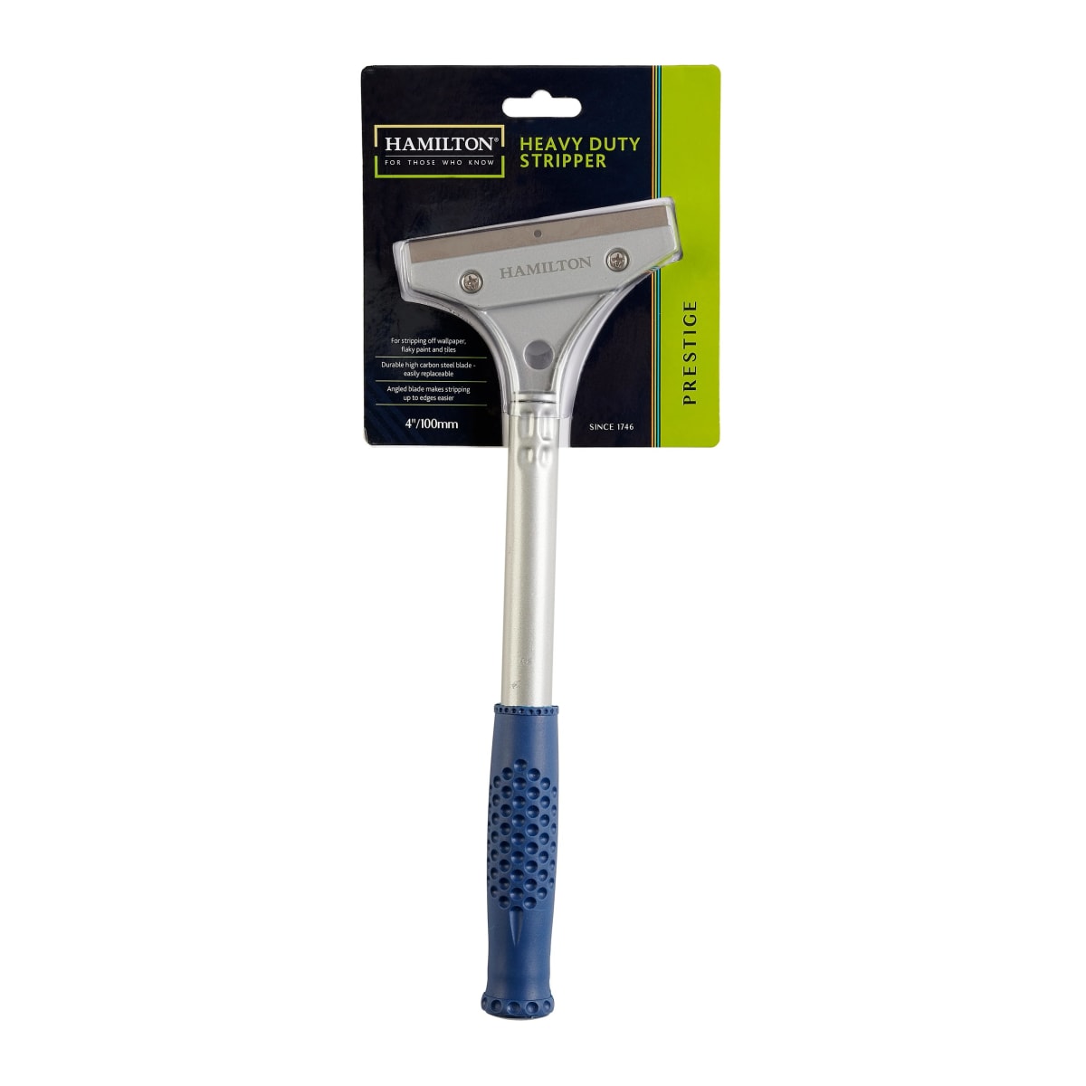 The Hamilton Prestige Heavy Duty Stripper is ideal for stripping wallpaper, flaky paint and tiles. The long and comfy handle makes stripping less of a chore, whilst the angled blade quickens the process. The blades are also replaceable, meaning the tool itself will last a lot longer.