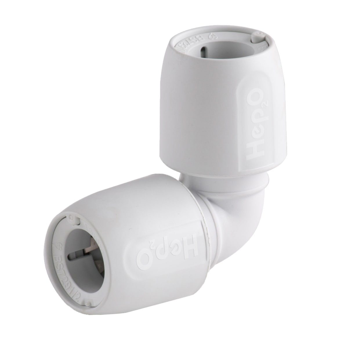 Hep2O HD5/15W Elbow 90 Degree 15mm - The Hep2O range is a fully tried and tested system and has been the first choice of professional plumbers in the UK for over 30 years. With many unique and patented features, Hep2O is the most technologically advanced fitting on the market. Guaranteed for 50 years against defects in materials and manufacturing, Hep2O has evolved and is now recognised as the professional’s system of choice. With significant performance benefits, easier and quicker installations without any compromise on quality or joint integrity. Hep2 O fittings are only available in white with sizes ranging from 10, 15, 22 and 28mm and in a comprehensive range of types to answer all domestic hot/cold water and heating applications. All O-ring seals contained in Hep2 O fittings have been pre-lubricated during factory assembly and during normal installation additional lubrication should not be required.