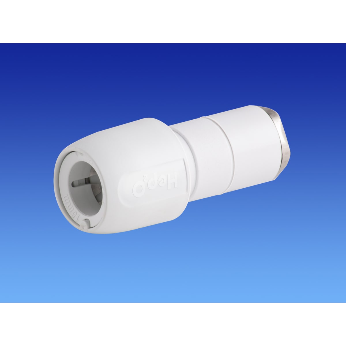 Hep2O HD2/22W 22 x 15mm Spigot Socket Reducer - The Hep2O range is a fully tried and tested system and has been the first choice of professional plumbers in the UK for over 30 years. With many unique and patented features, Hep2O is the most technologically advanced fitting on the market. Guaranteed for 50 years against defects in materials and manufacturing, Hep2O has evolved and is now recognised as the professional’s system of choice. With significant performance benefits, easier and quicker installations without any compromise on quality or joint integrity. Hep2 O fittings are only available in white with sizes ranging from 10, 15, 22 and 28mm and in a comprehensive range of types to answer all domestic hot/cold water and heating applications. All O-ring seals contained in Hep2 O fittings have been pre-lubricated during factory assembly and during normal installation additional lubrication should not be required.