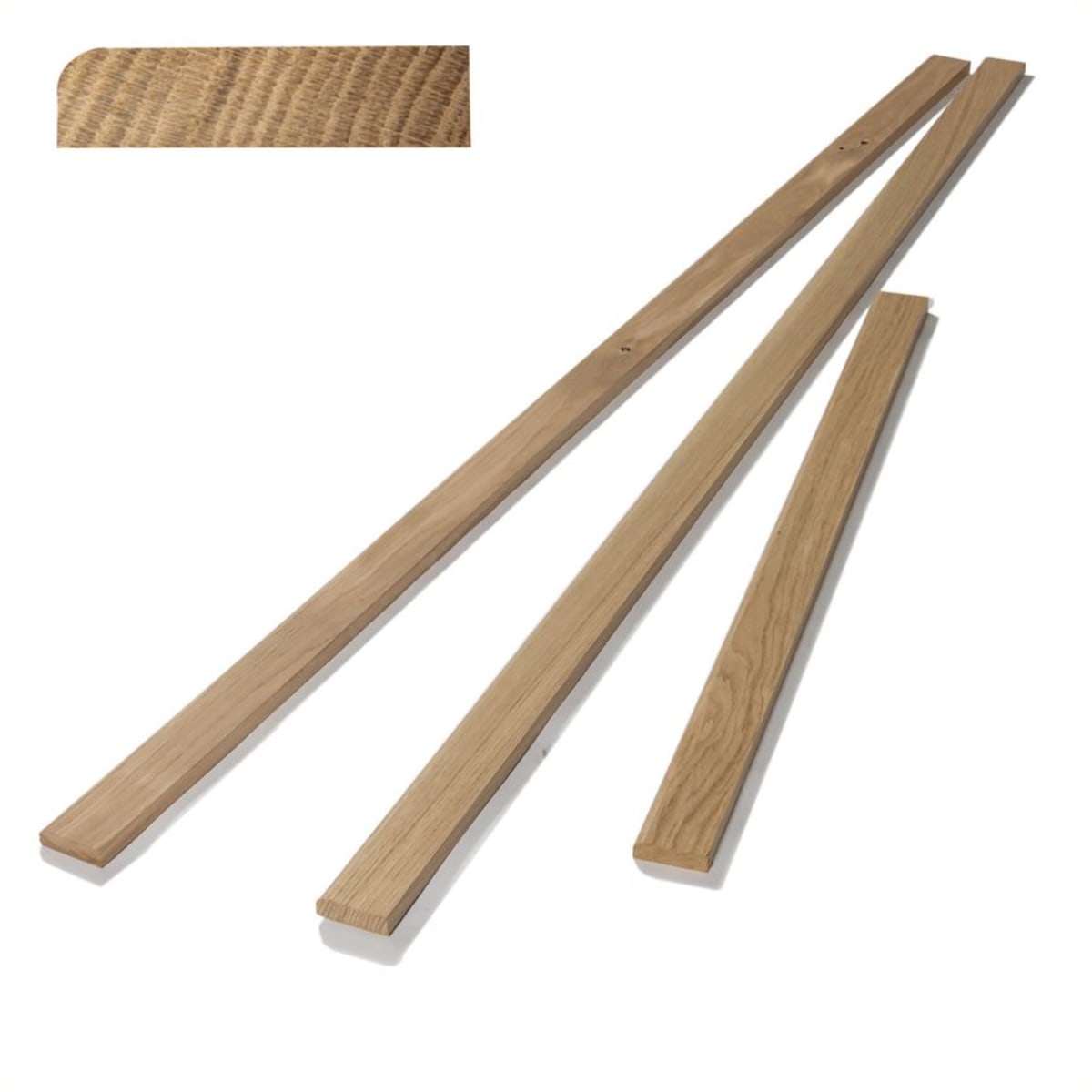 Solid oak architrave set for one side of any doorway in a popular bullnose profile. Includes 2 x Lengths 2100 & 1 x 1100 x 20mm