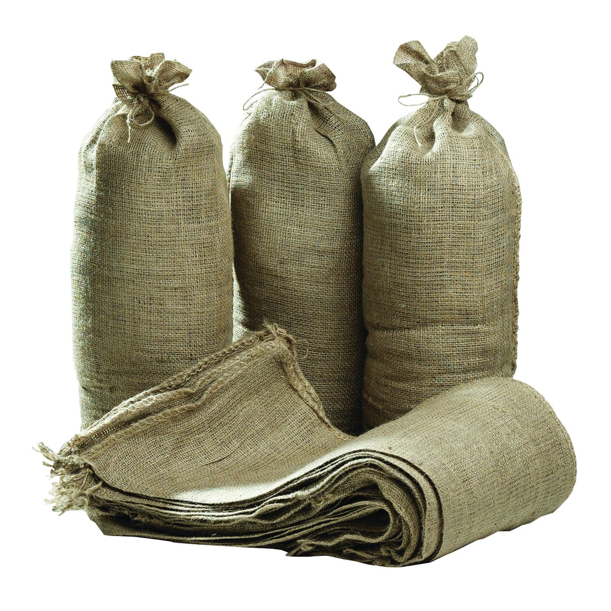 The Hessian Sand Bag 325 x 750mm (W x L) with Tie String is perfect for providing protection even in severe weather conditions. The bags can be tied shut with the attached tie string. The product is used for flood control and prevention.