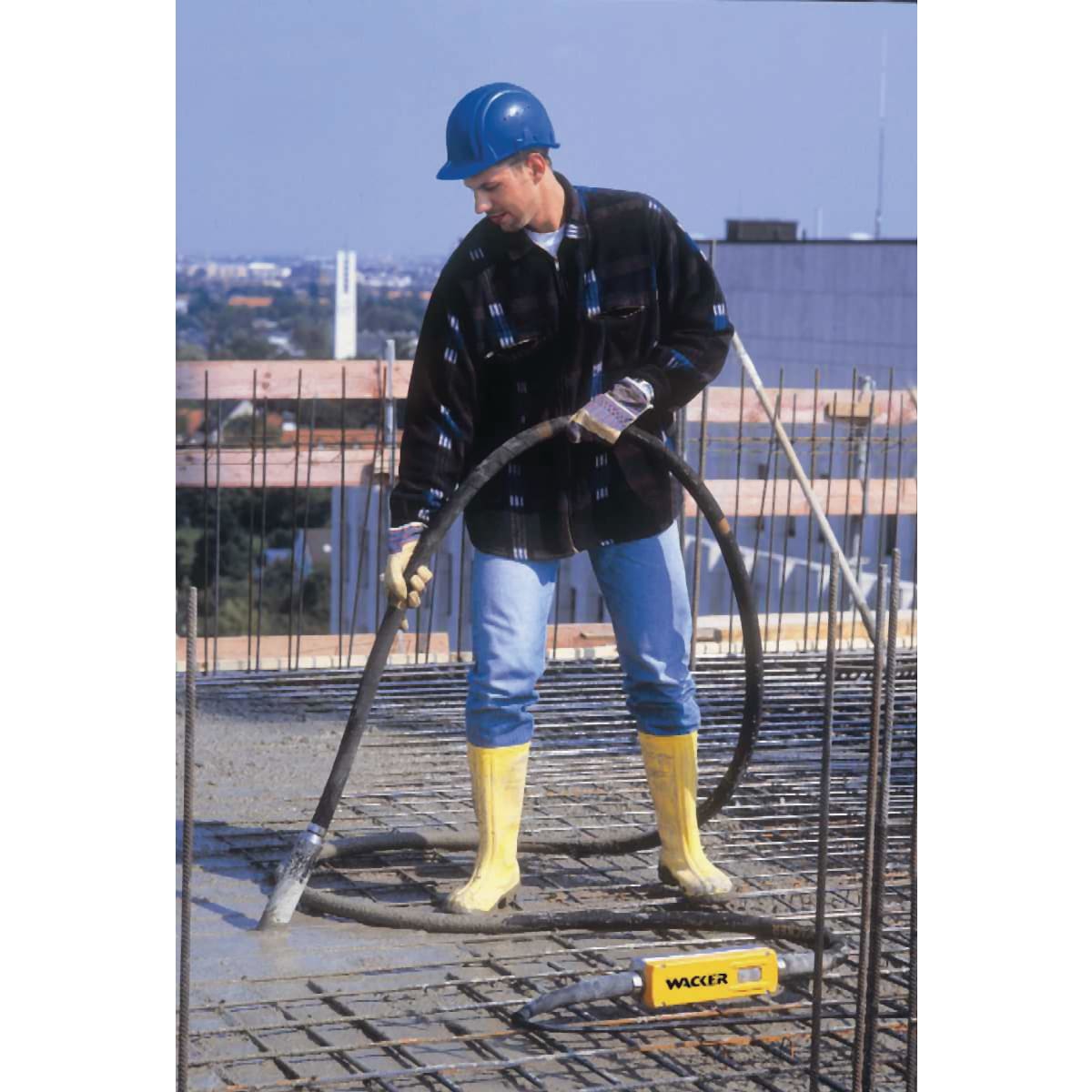 High frequency internal vibrator. Use for concrete compaction of foundations, walls, columns, and wherever high frequency concrete vibration is required.