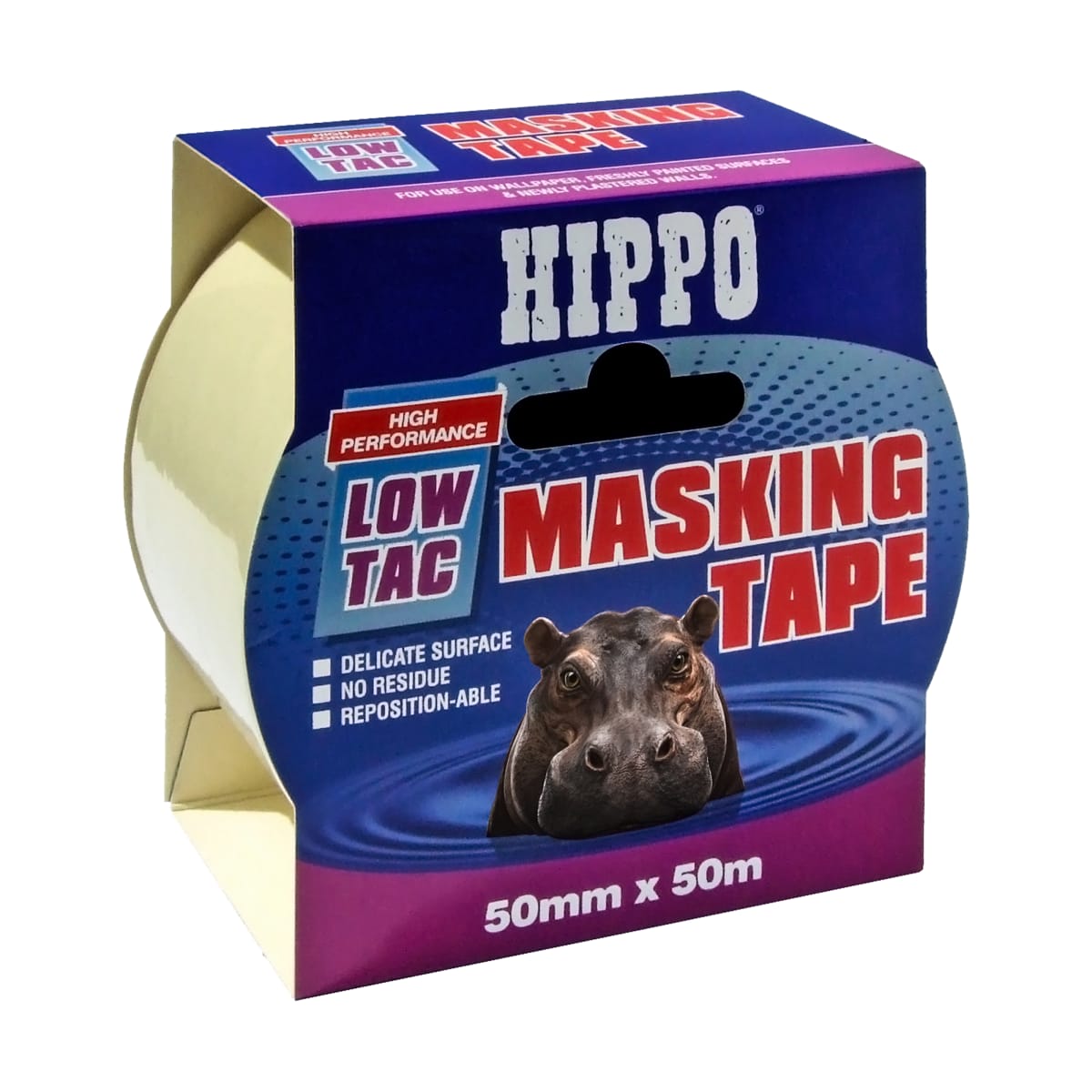 Painting & Decorating > Cleaning & Preparation > Surface Preparation > Hippo Low-Tac Masking Tape 50mm x 50m Beige