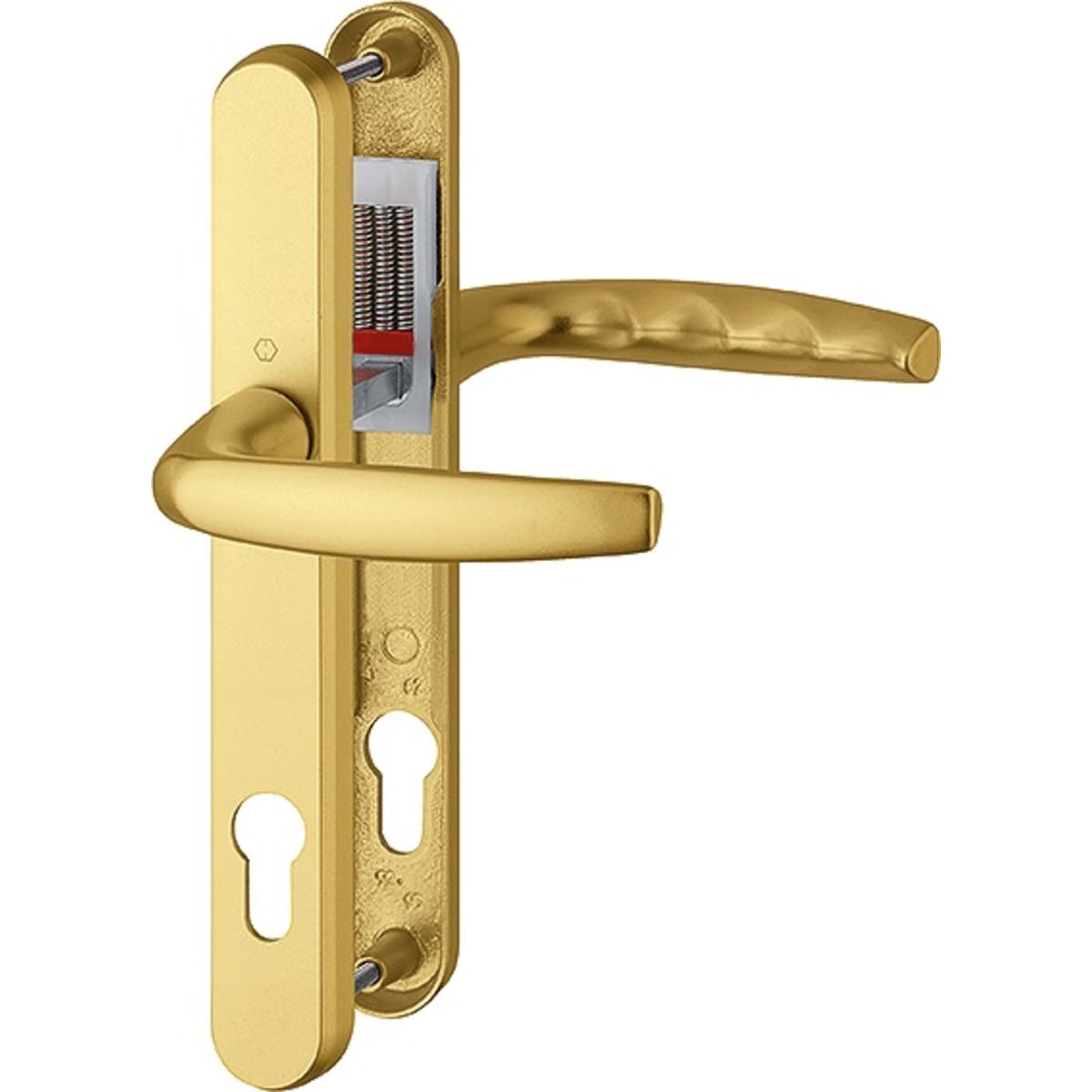 Hoppe Atlanta Lever Door Handle Set 127 x 242 x 32mm (L x H x W) Aluminium Gold designed with rounded corners. The handle is made from aluminium for better resistance to wear, improved reflectivity, better surface structure and improved electrical insulation.