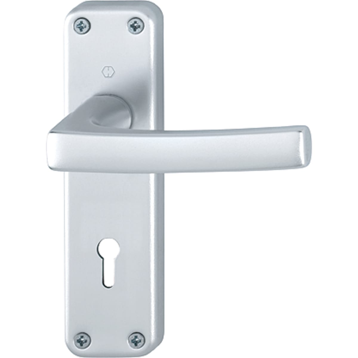 Hoppe aluminium handle set on short backplate for interior doors: