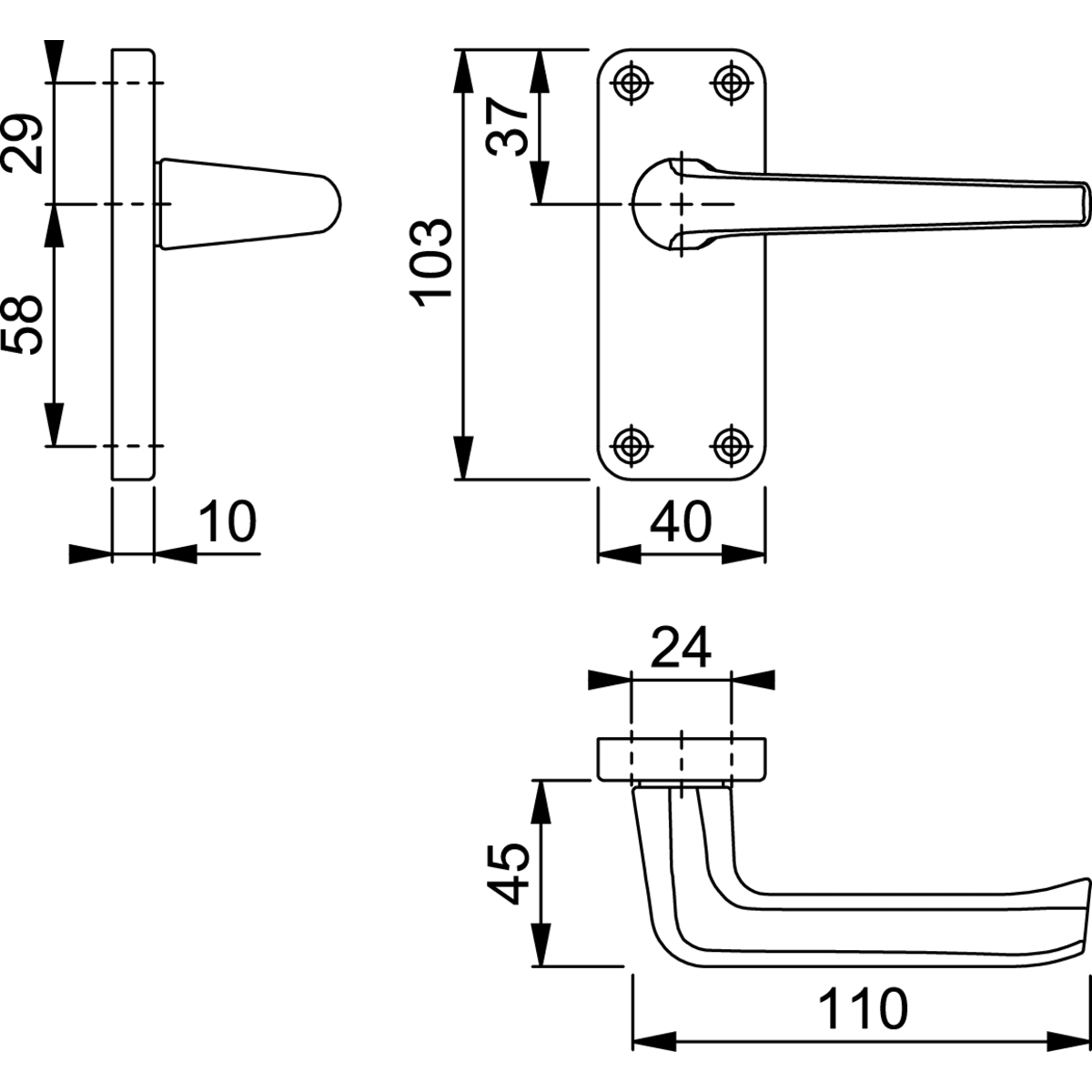 Hoppe Edinburgh Lever Latch 103 x 40 x 10mm (H x W x T) Satin Anodised Aluminium is a door handle. The product has a rectangular back plate and tubular latch made with aluminium finish with four pre-drilled holes saving installation time. Lever is suitable for doors with a thickness of 20-40mm.
