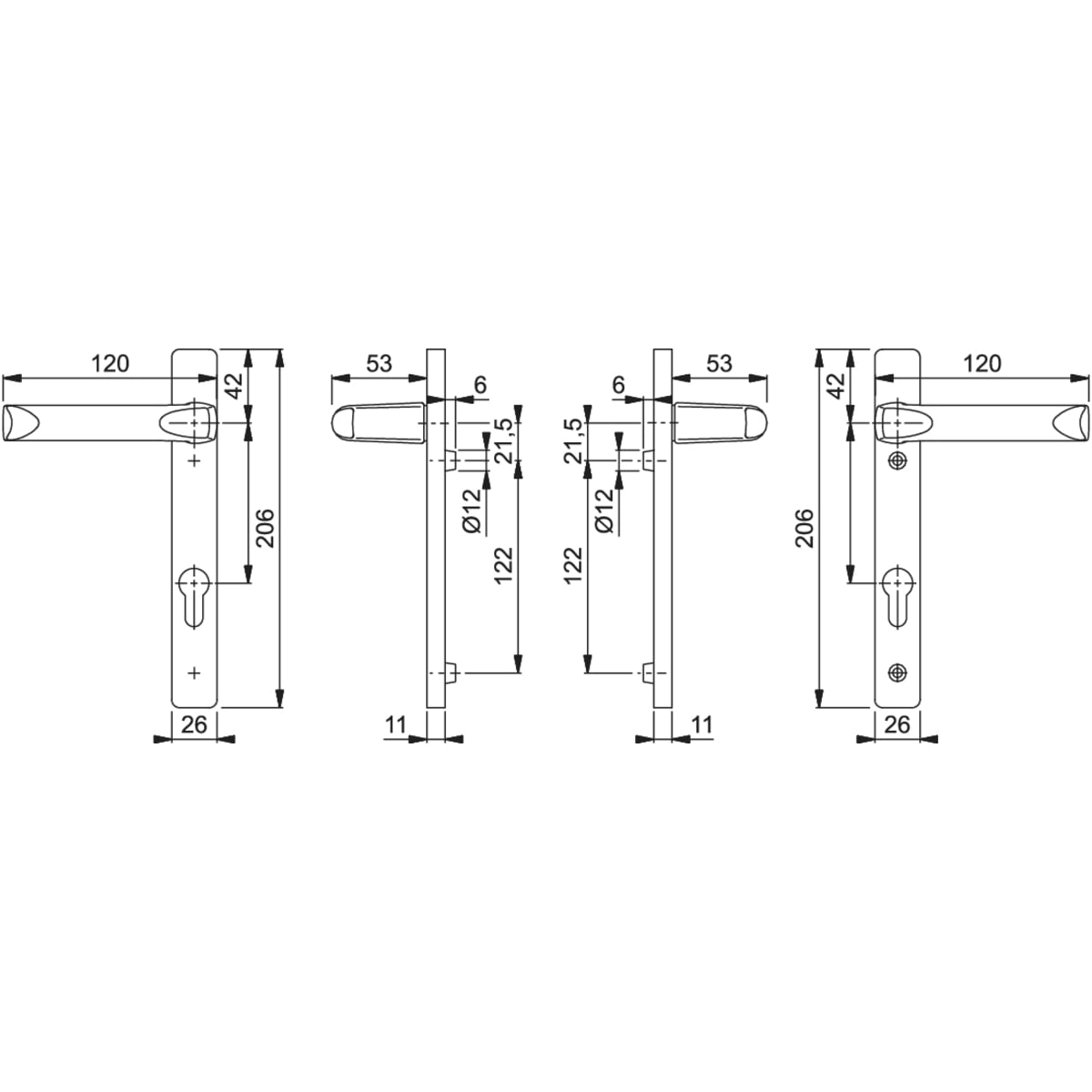 Hoppe Lever Door Handle 205mm (H) Gold is a slim door handle. Reversible hand feature enables to install the lever set on either a left hand or a right hand configured door. The lock centre measures about 92mm in height from the lever and the top screw to the bottom of the screw measures about 122mm in height. It is supplied with an internal handle, external handle, spindle and fixing screws.