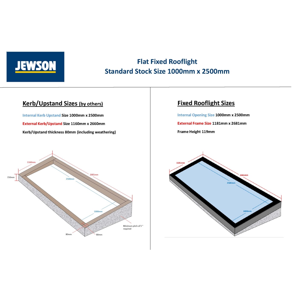 Infinity Flat Fixed Rooflight Stock Internal Sizes 1000 x 2500mm